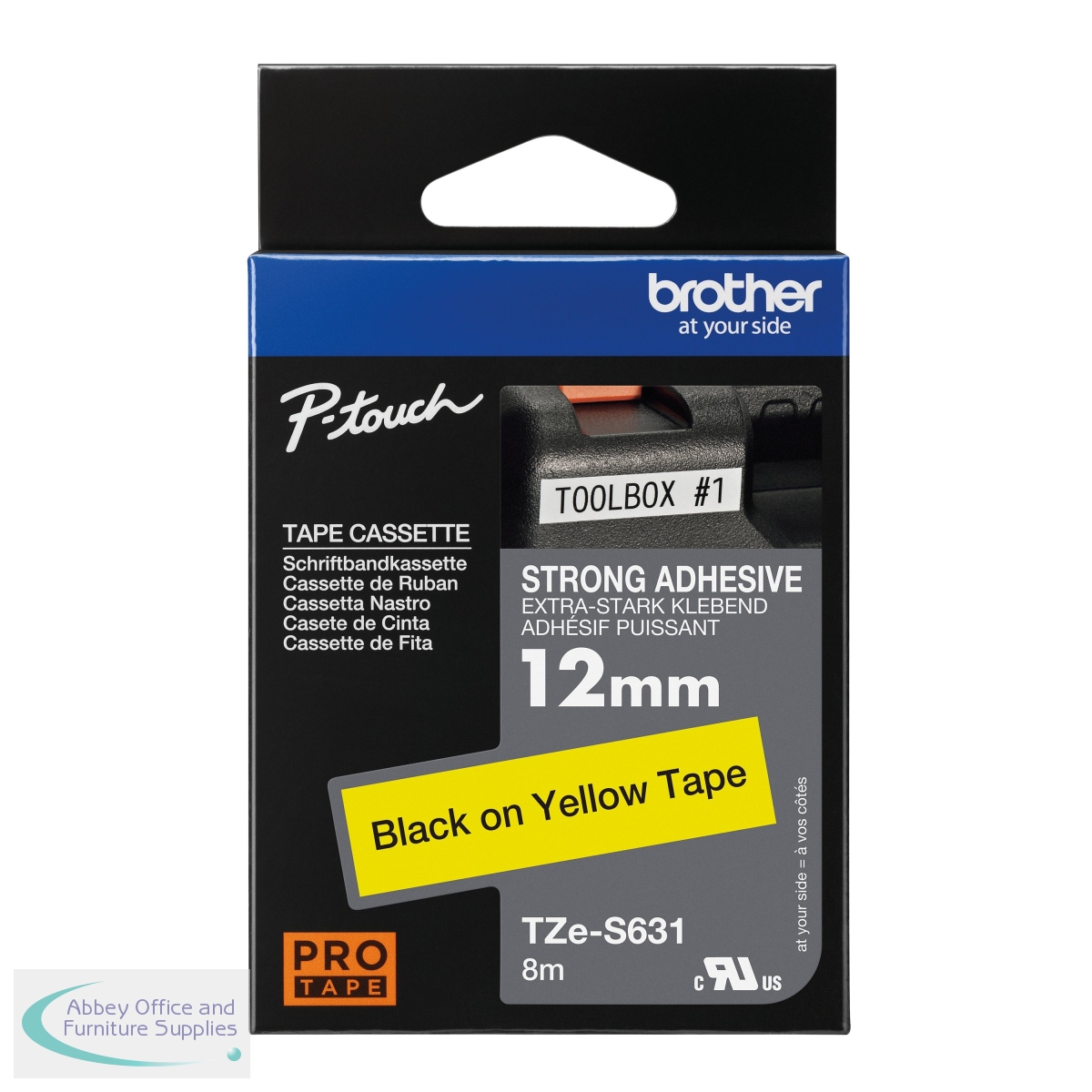 BA69562 - Brother P-Touch TZe Lam Tape Cassette 12mm x 8m Black On Yellow Tape TZES631