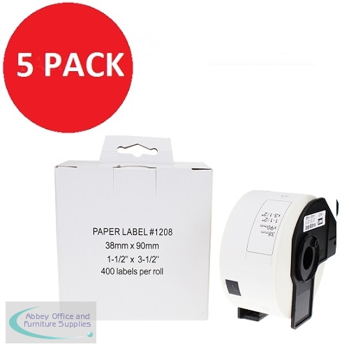 TS-CDK11208PK - Compatible Brother DK11208 Black on White 38mm x 90mm 400pcs Pack of 5