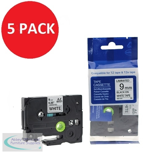 TS-CTZE221PK - Compatible Brother TZE221 Black on white 9mm x 8m Pack of 5