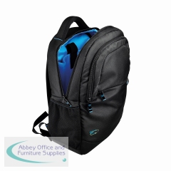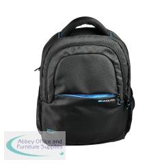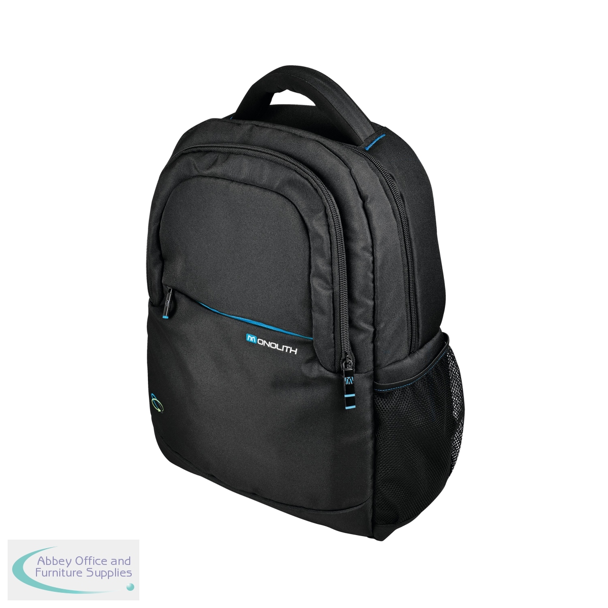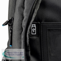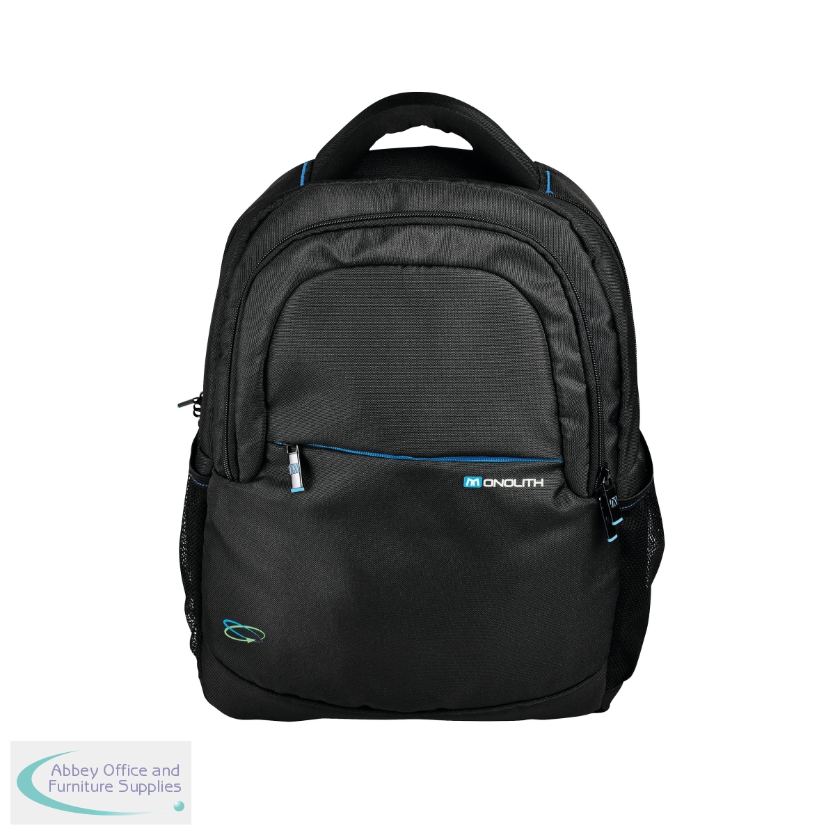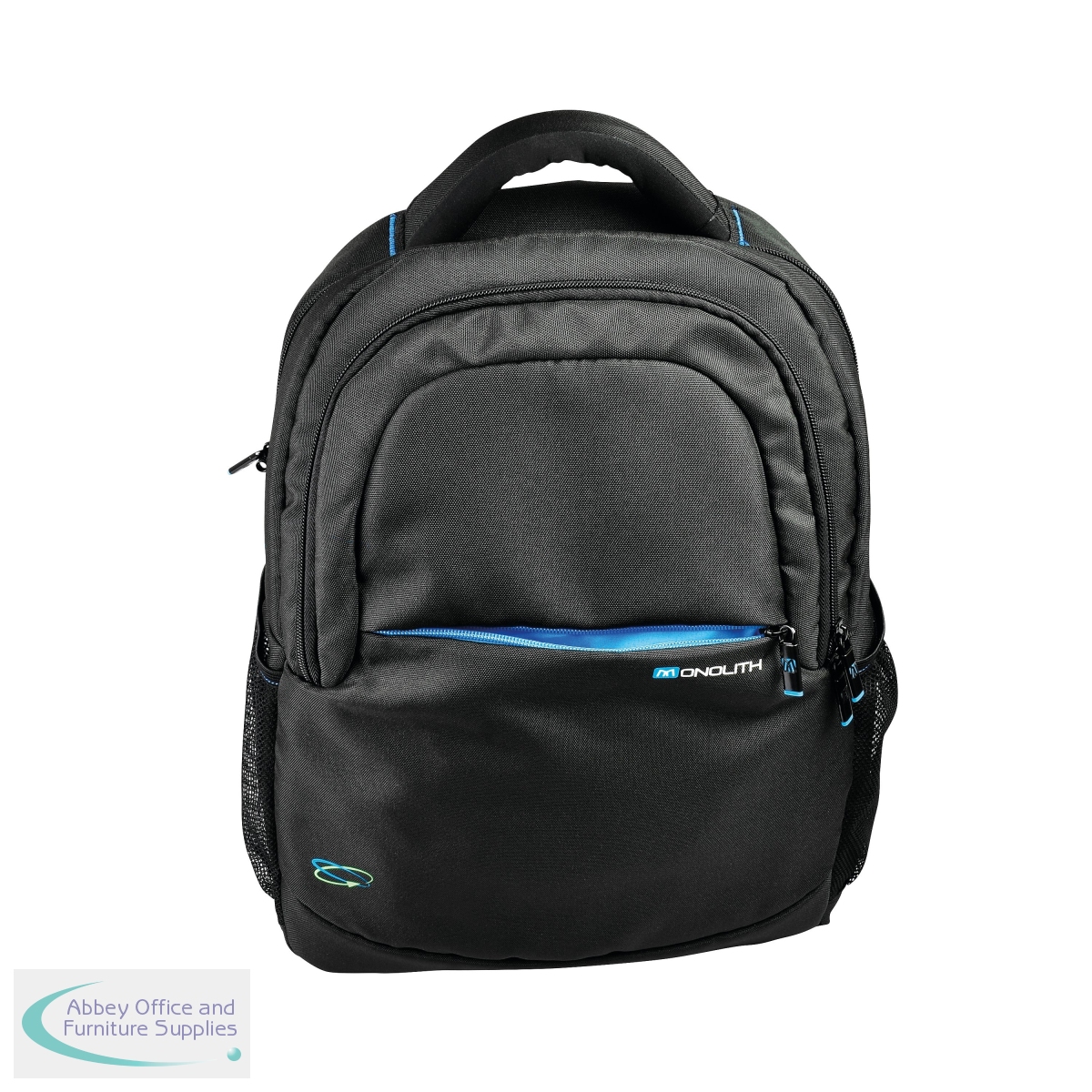 This stylish and professional laptop backpack from Monolith contains numerous useful pockets and organisation sections suitable for documents stationery and more. With a padded pocket for protection of your laptop, iPad or tablet measuring up to 15.6 inches. Featuring a comfortable carry handle and padded straps, the backpack is a modern design supplied in black with blue ascents and blue lining. Made from recycled plastic bottles, this backpack helps protect our environment keeping plastic out of our oceans.