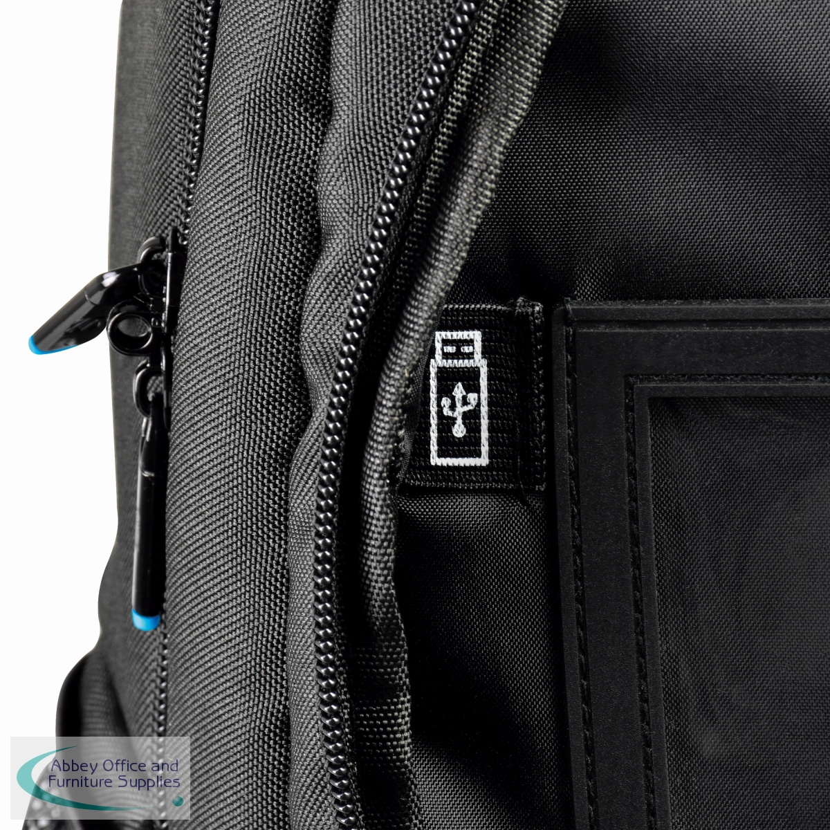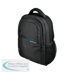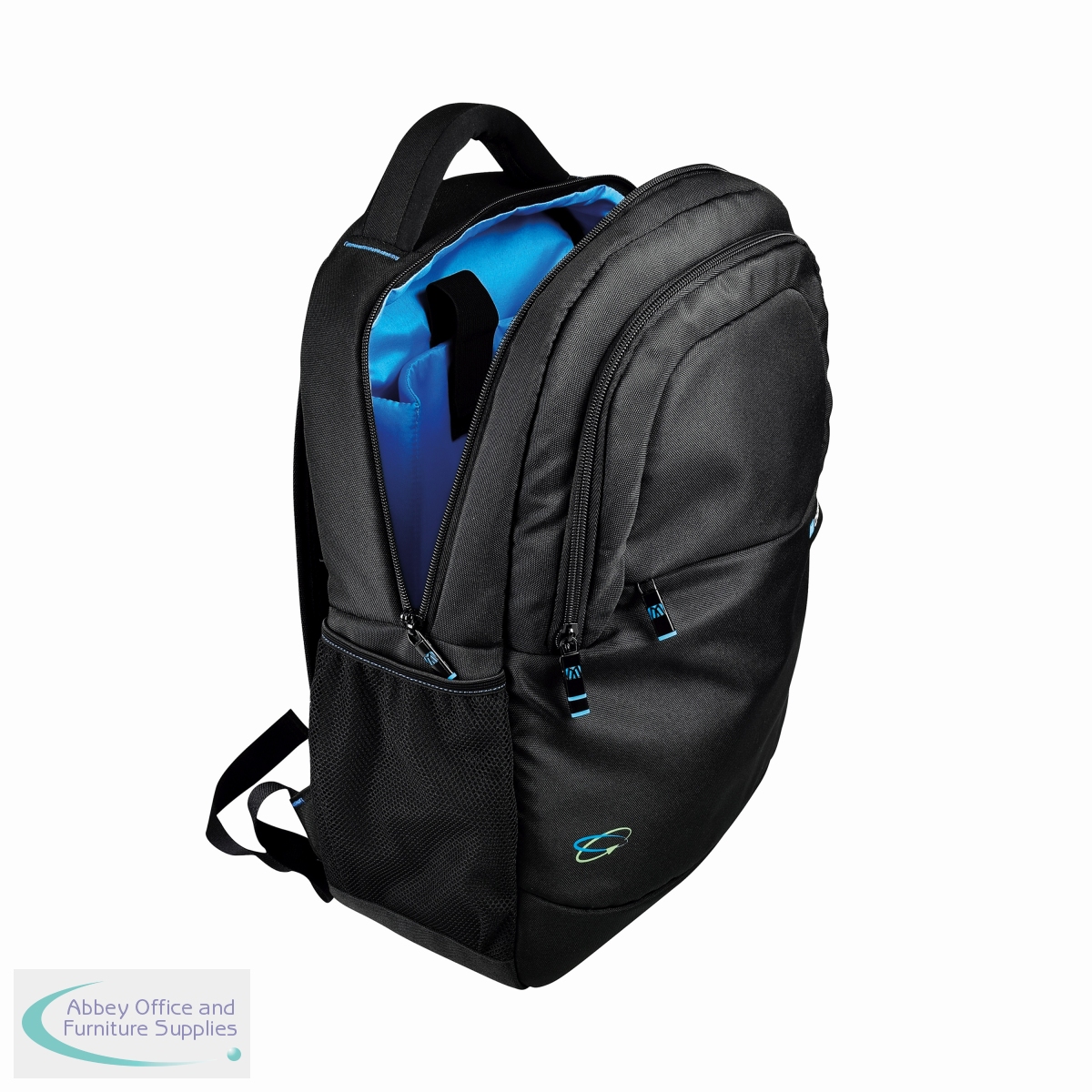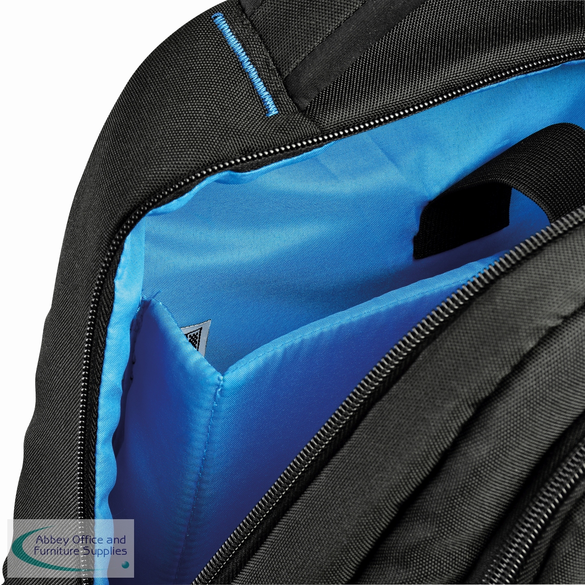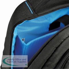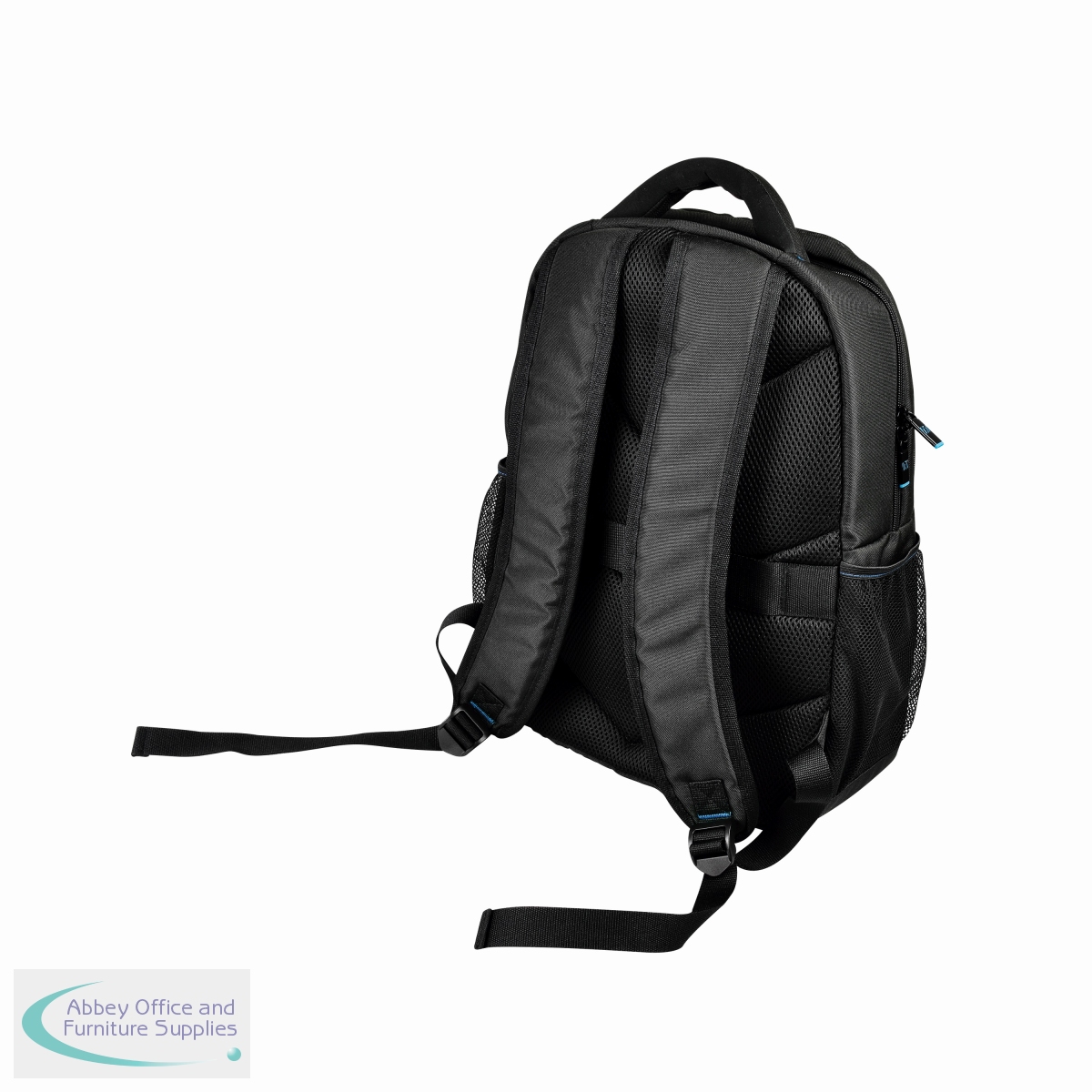 This stylish and professional laptop backpack from Monolith contains numerous useful pockets and organisation sections suitable for documents stationery and more. With a padded pocket for protection of your laptop, iPad or tablet measuring up to 15.6 inches. Featuring a comfortable carry handle and padded straps, the backpack is a modern design supplied in black with blue ascents and blue lining. Made from recycled plastic bottles, this backpack helps protect our environment keeping plastic out of our oceans.