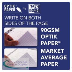 This Oxford My Notes notebook contains 200 pages of 90gsm Optik paper, which is ruled with a margin for neat note-taking. The pages are also perforated for easy removal. The notebook is wirebound, allowing it to lie flat for ease of use, with a sturdy backboard for support. This pack contains 3 A4 notebooks.