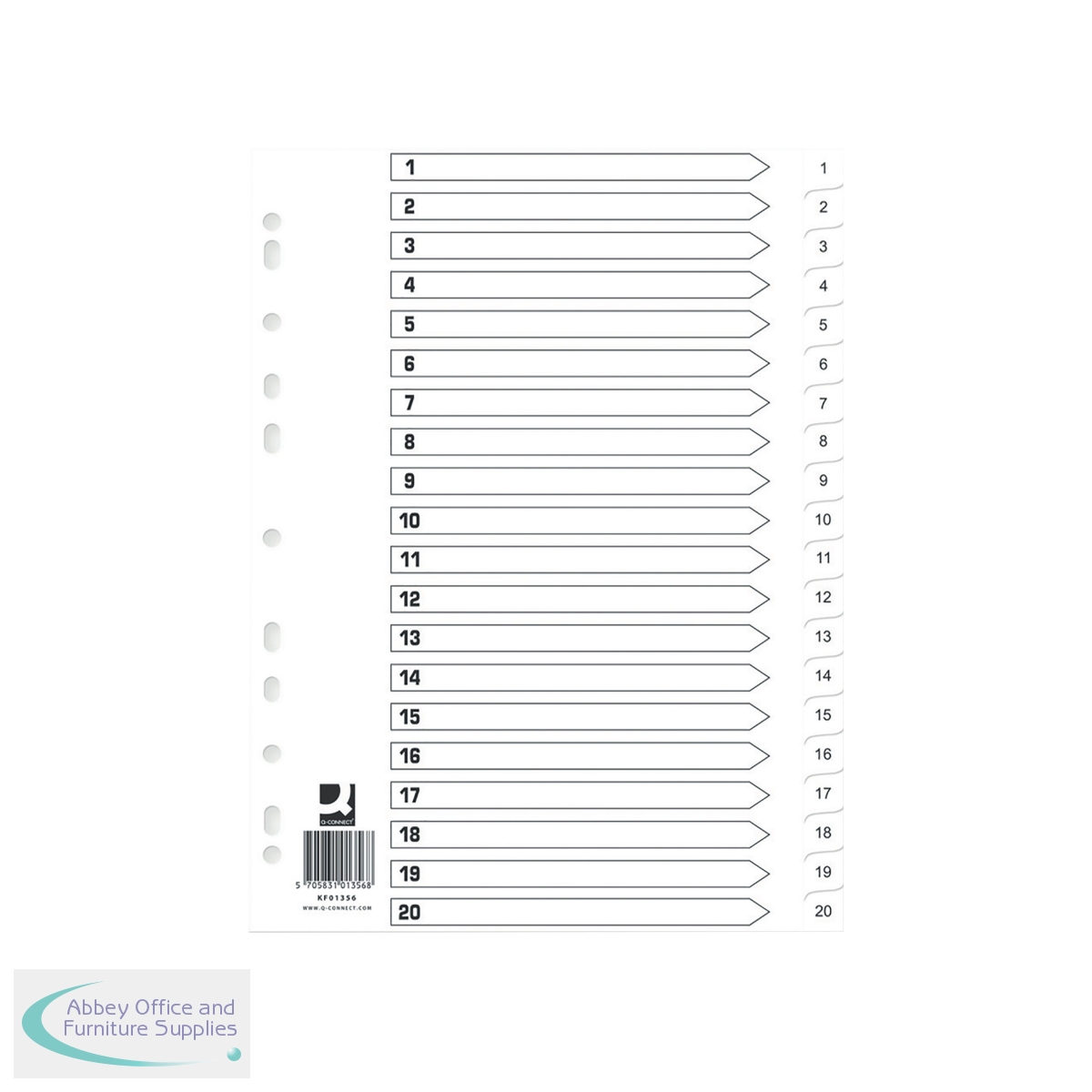 KF01356Q - Q-Connect Index 1-20 Polypropylene White (10 Pack) KF01356Q