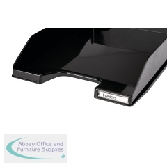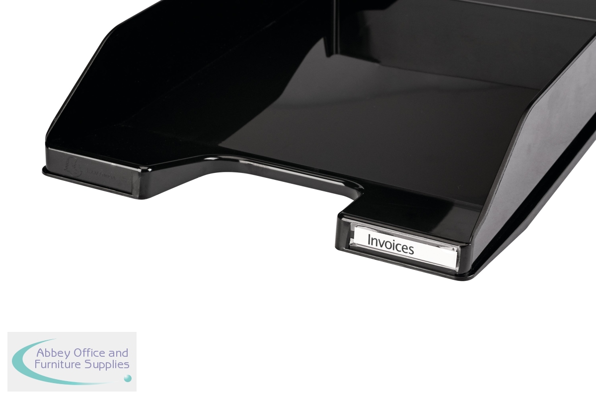 This Contour Ergonomics Letter Tray features a stylish curved design with a high gloss finish. Ideal for desktop storage and organisation of A4 letters, files and documents, the letter tray also comes complete with a label holder and insert for easy identification. This pack contains 1 glossy black letter tray.