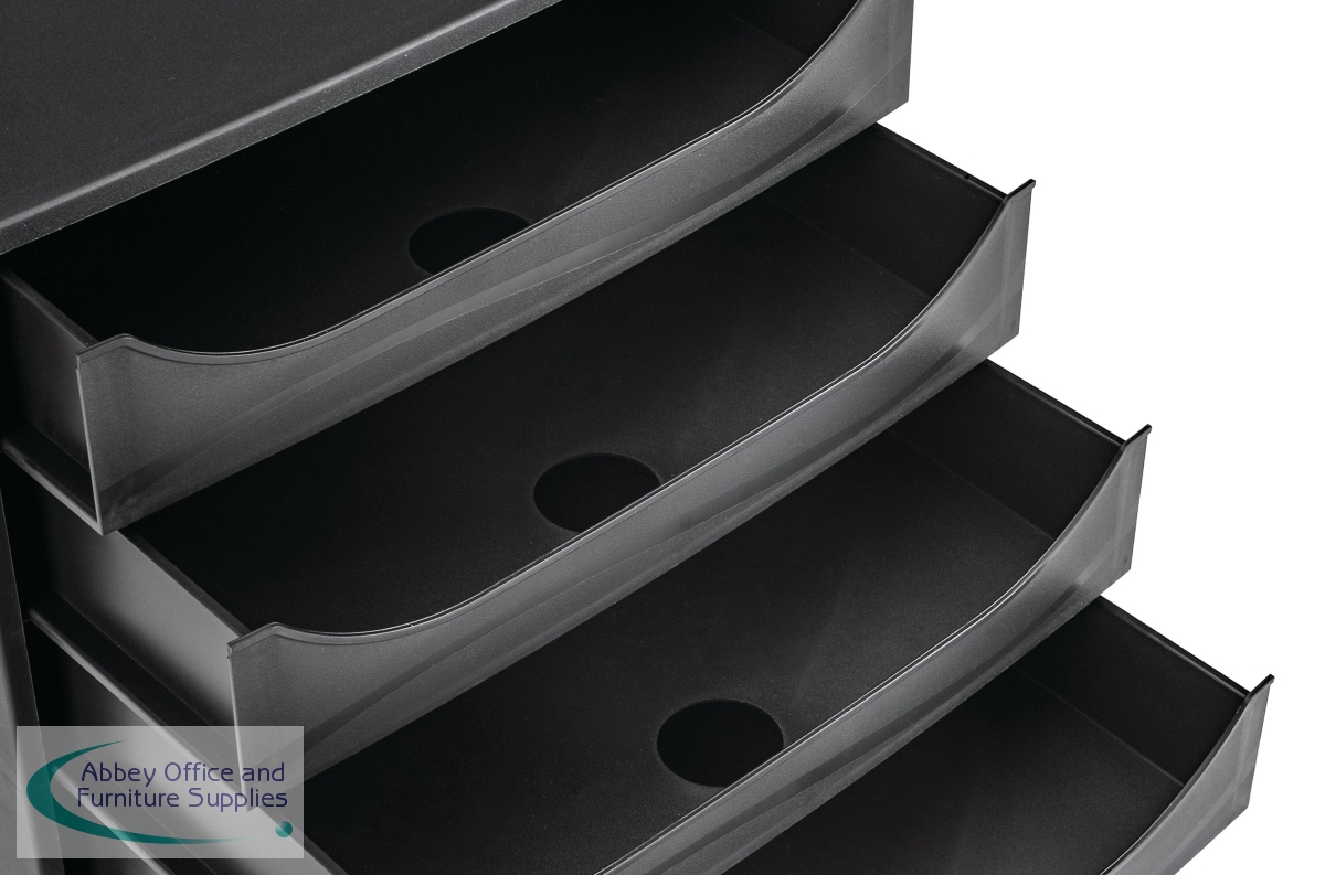 Ideal for desktop use, this Contour Ergonomics 4 Drawer Set features smooth opening drawers with finger holes for easy access. Suitable for A4 files and documents, the drawer set has a matte finish and comes in black.