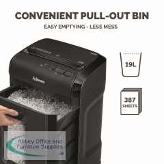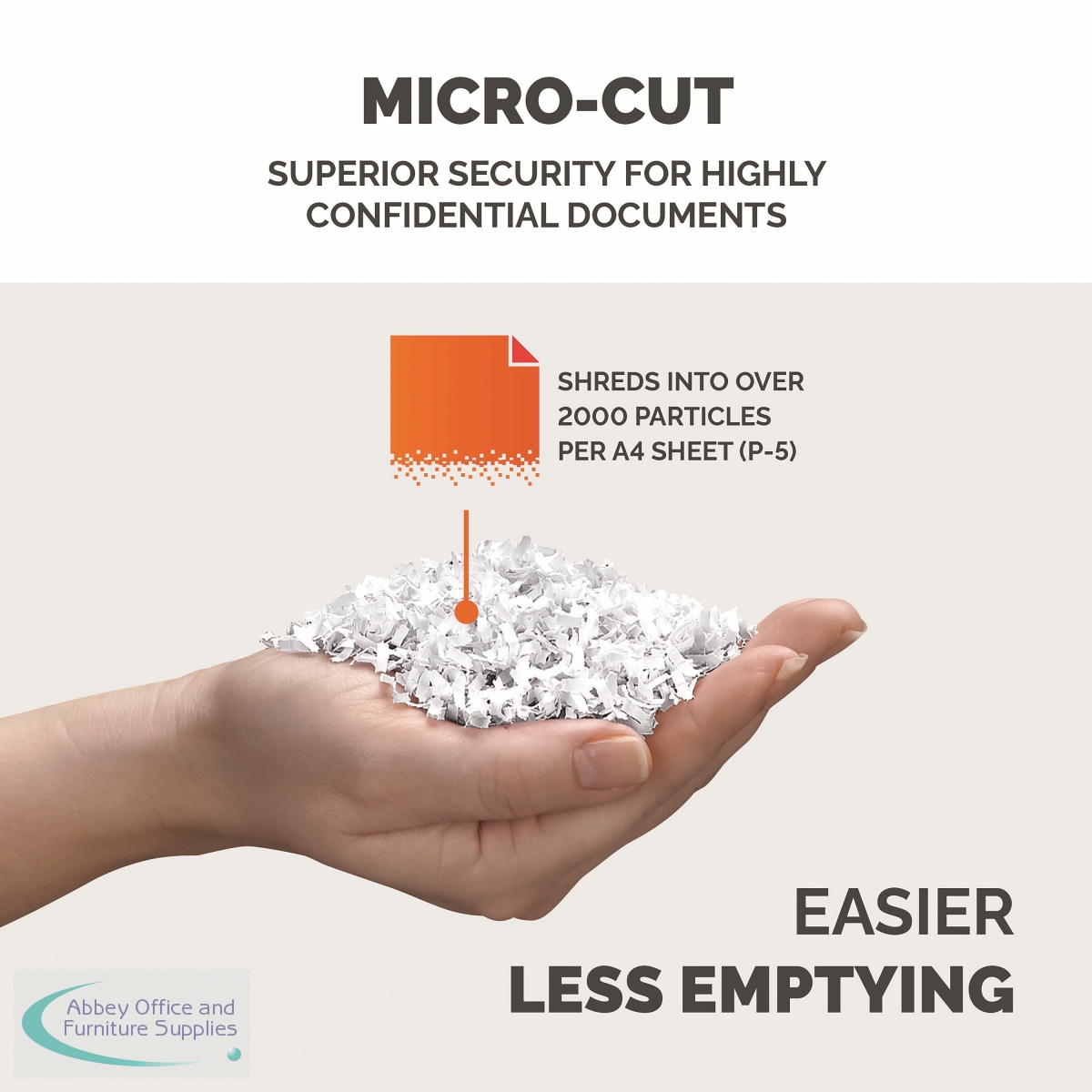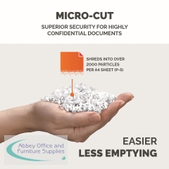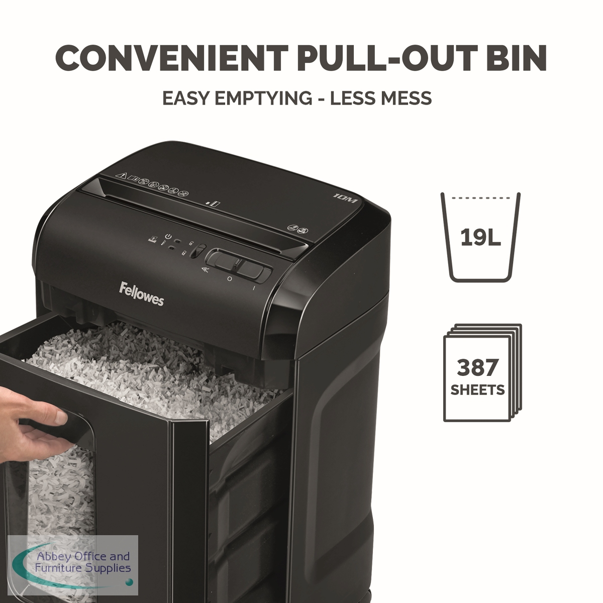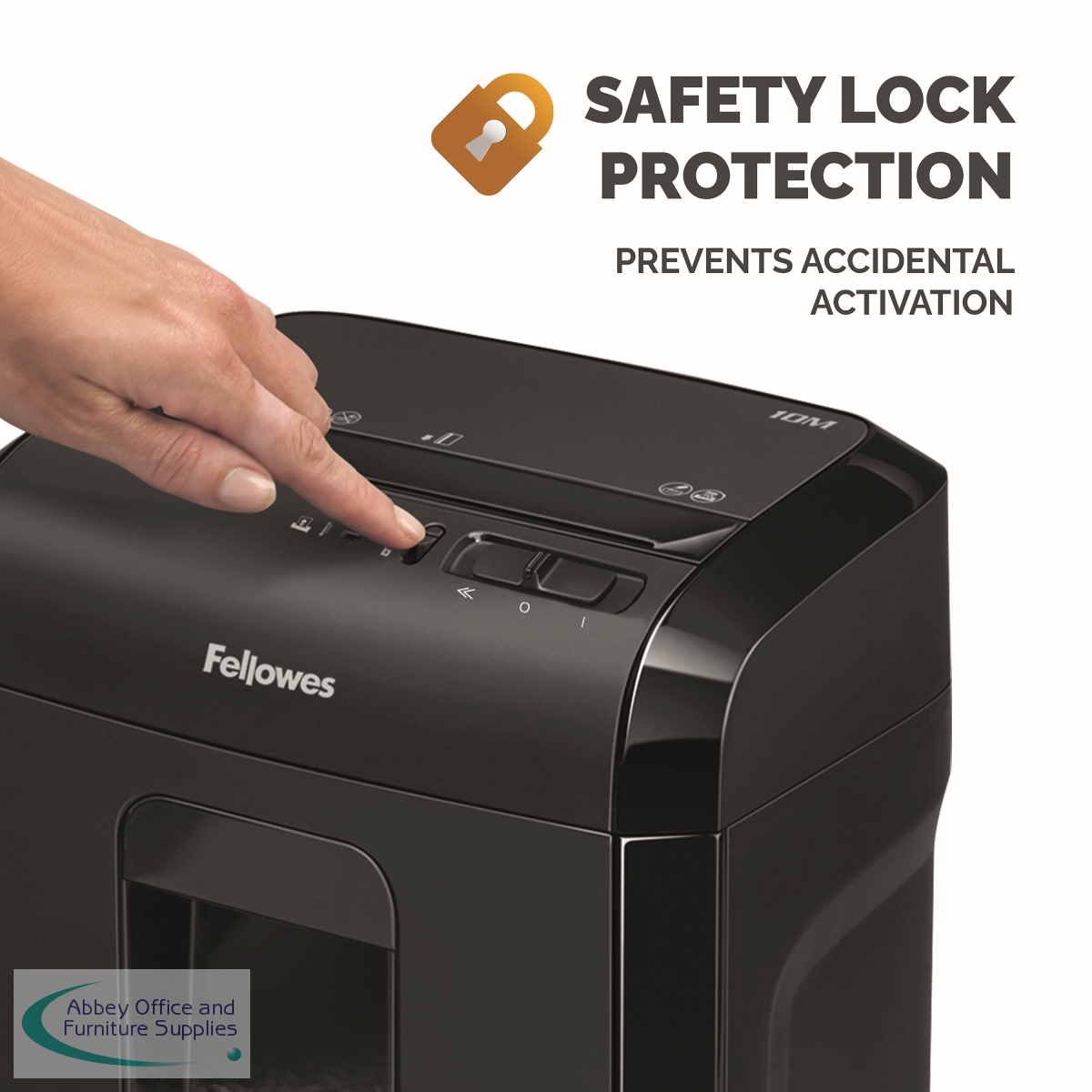 For secure disposal of sheets and documents, the Fellowes 10M Micro-Cut Shredder has got you covered. With the ability to shred to shred 10 sheets of paper into 2x12mm particles for a security level of P-5. The 10M is capable of nonstop shredding for up to 10 minutes and can handle staples and credit cards with ease. Avoid accidental activation thanks to the inbuilt Safety Lock, and a 19 litre pull out bin allows for easy disposal of wastepaper shredding.
