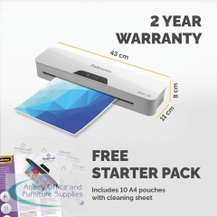 A sleek and stylish laminator from Fellowes, the Pixel A3 laminator is an incredibly versatile and easy to use machine, perfect for use at home or in smaller offices. Boasting an exceptionally fast heat-up time of as little as 3 minutes, the Pixel is capable of laminating in 80 or 125 micron thickness allowing it to perfectly suit your needs. With a host of other user-friendly features, such as an automatic shutdown after 30 minutes of inactivity for increased energy efficiency and a release trigger for easily retrieving and realigning misfed documents, the Pixel A3 laminator is both highly efficient and practical.