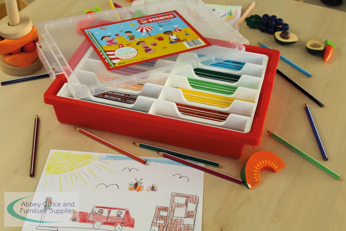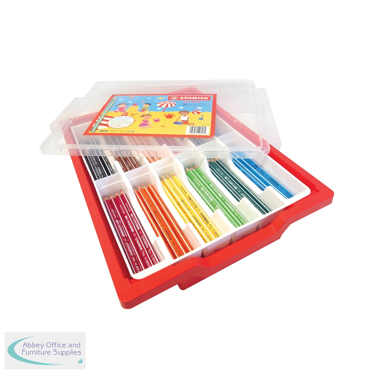 Stabilo Trio Thick Pencils have an ergonomic, triangular shape that is perfect for little hands and writing novices. The pencils help to promote the recommended tripod grip whilst colouring. The thick lead applies a bold line to encourage a relaxed hold and they come in a variety of colours for fun and creative use. Ideal for primary school children aged from 5 to 12 years old. This classpack contains 96 pencils in 12 assorted colours, presented in a Gratnell tray.