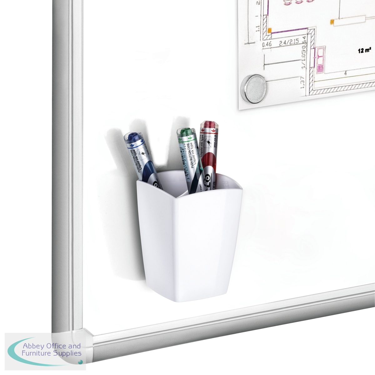 Keep markers and whiteboard accessories within easy reach during lessons, meetings and presentations with this CEP Pen Cup. It securely adheres to magnetic whiteboards and surfaces with two compartments to hold several pens at once. It is made from shock resistant and recyclable polystyrene with a high gloss finish.
