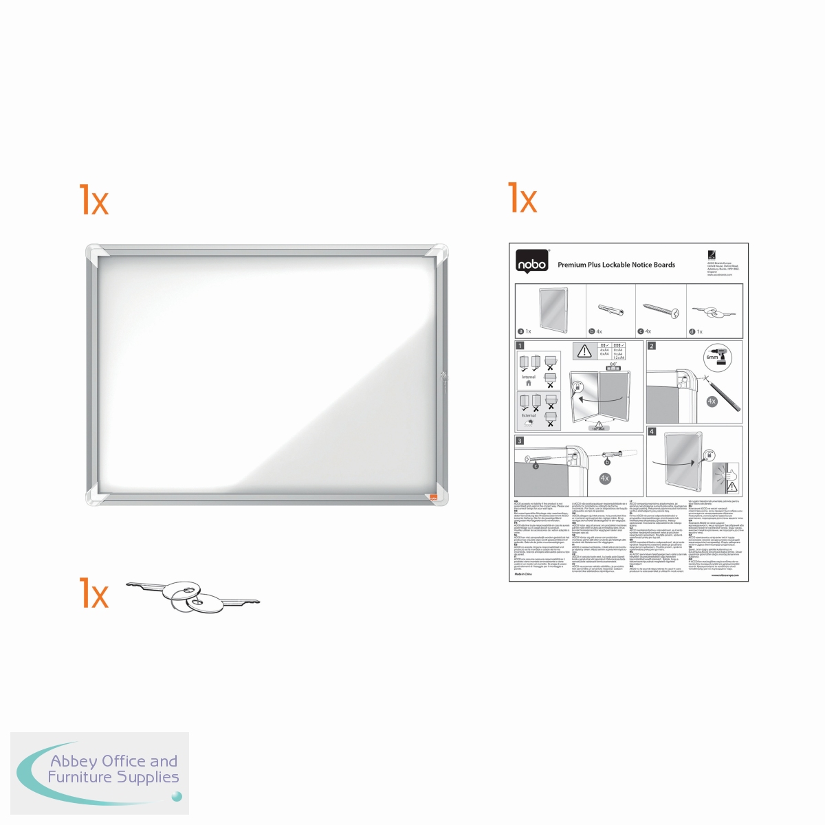 NB06392 - Nobo Premium Plus Magnetic Lockable Notice Board 4xA4 1902557