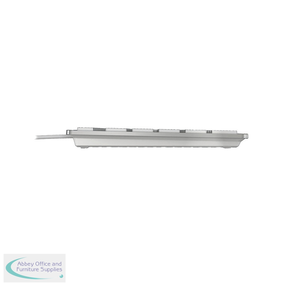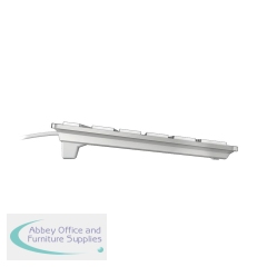 This CHERRY KC 6000 Slim Wired Keyboard features a sturdy, ultra flat design with an integrated metal plate. The wired design has a 1.8m long cable and USB connection for Macs. This keyboard comes in silver with white keys and measures W440 x D130 x H15mm.