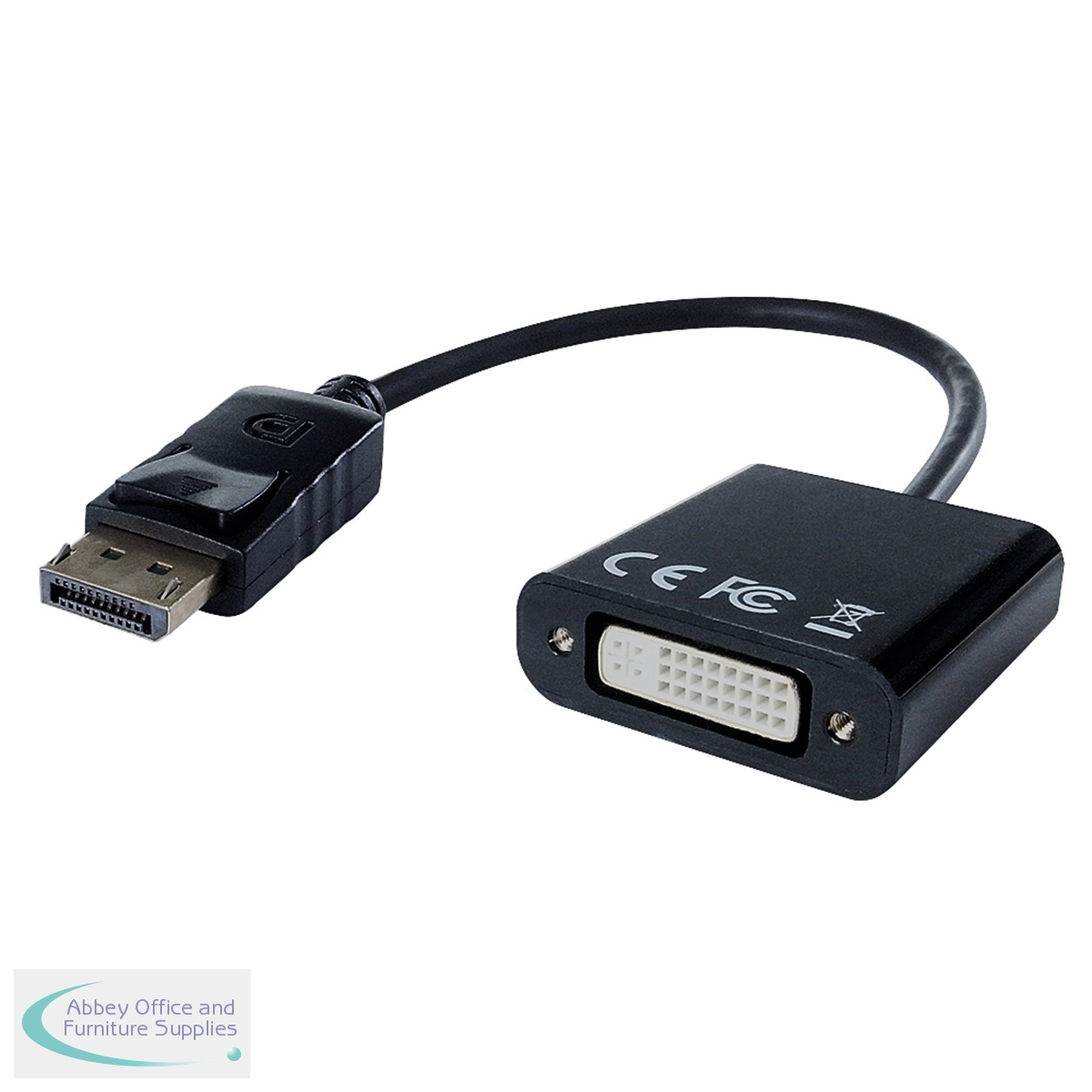 The DisplayPort to DVI-I Active adapter connects the DisplayPort source to the display featuring a DVI socket. This durable adapter plugs into a DisplayPort source, creating a DVI socket which allows connection to a DVI display via a DVI cable without compromising the quality of visual and audio experience. The hot plug detection means there is no need to restart the computer and the integrated chip provides active digital to analog conversion.
