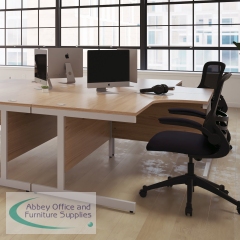 Suitable for use in a variety of office environments, this First Radial Cantilever Desk features a strong cantilever frame for support and stability. The radial design offers easy working access to your computer, as well as ample additional desktop space. It features a 25mm thick desktop with dual 62mm cable management ports to keep workspaces tidy and free from wires. The desk includes a modesty panel as standard and is suitable for use with First Under Desk Pedestals.