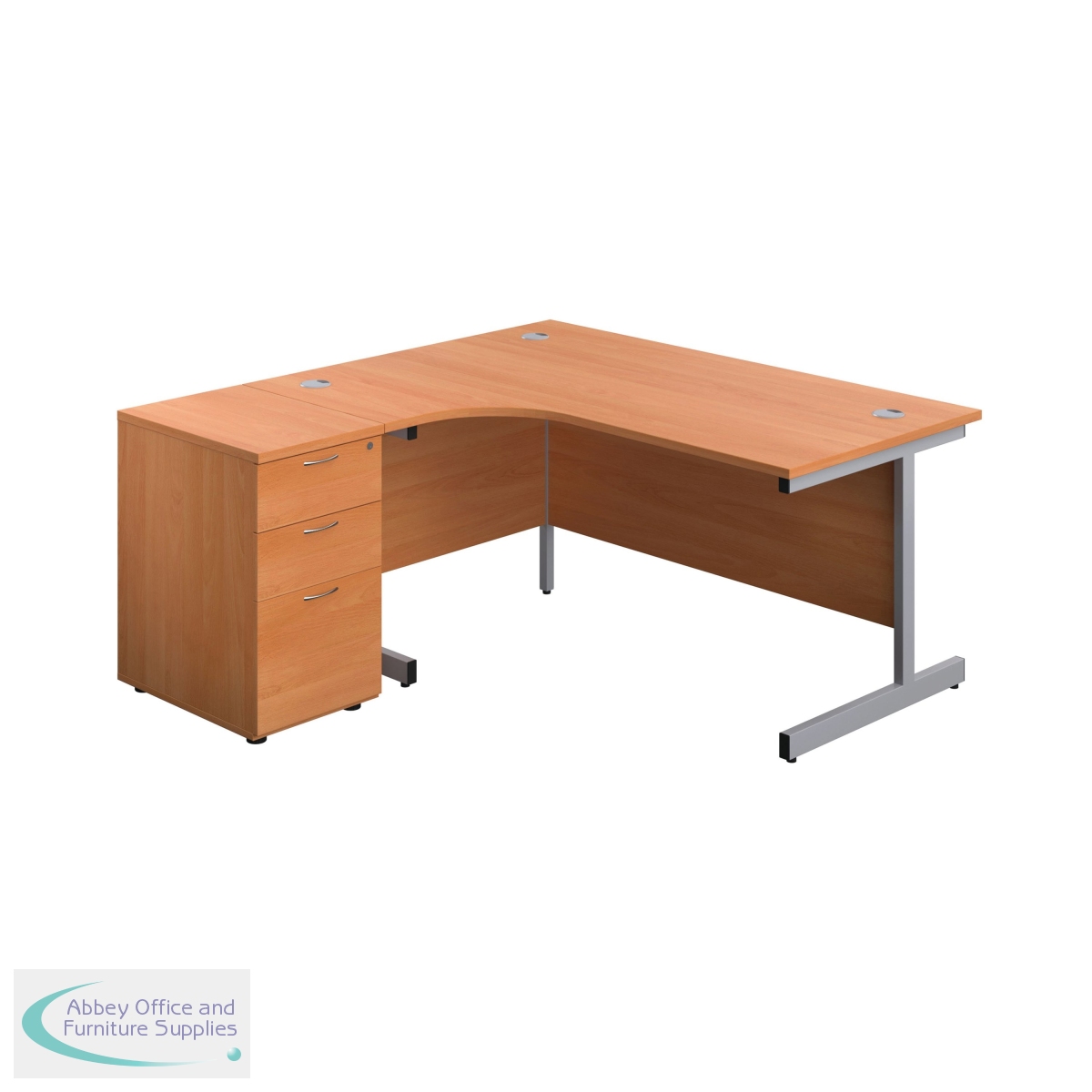 KF803256 - First Radial Left Hand Desk with Pedestal 1600x800-1200mm Beech/Silver KF803256
