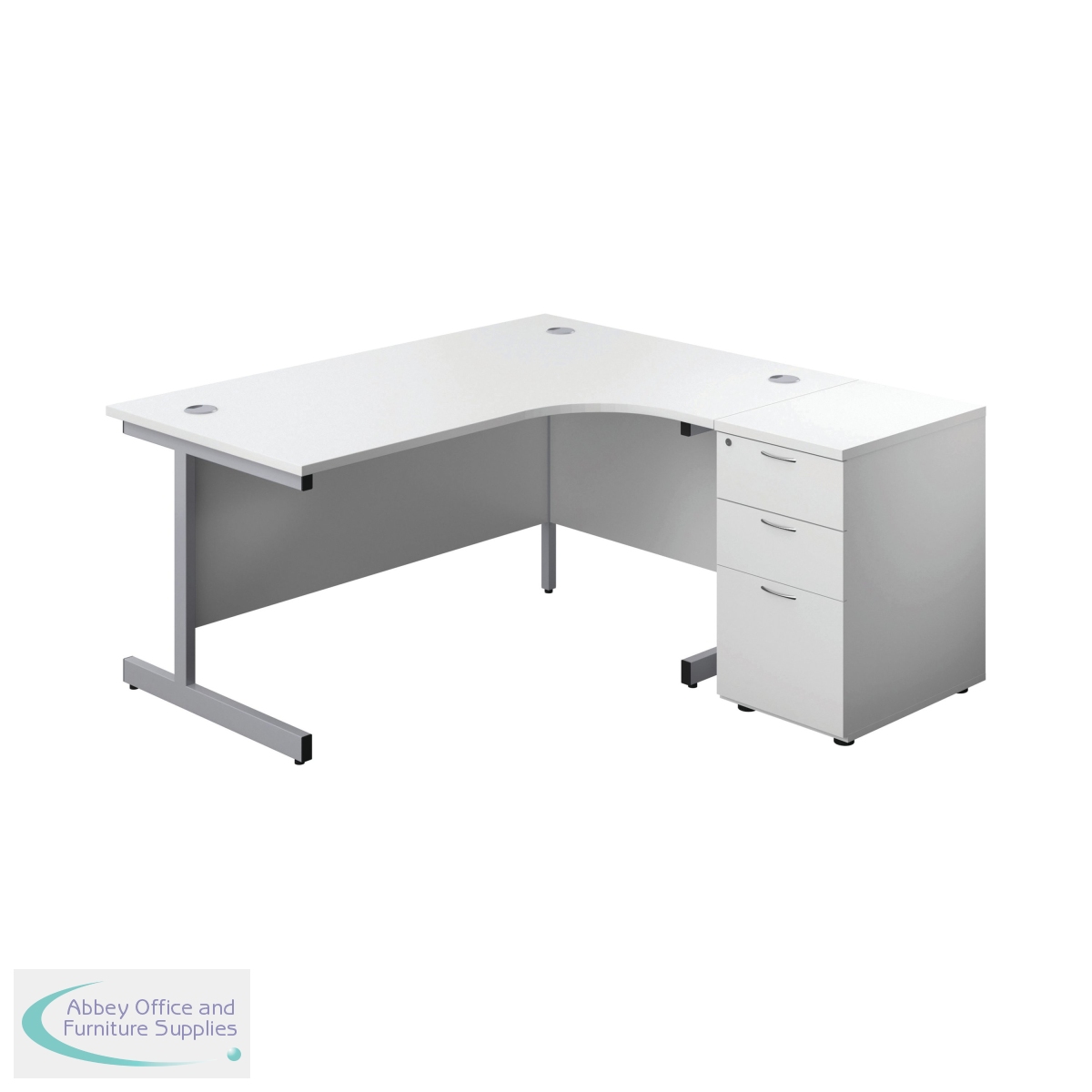 KF803300 - First Radial Right Hand Desk with Pedestal 1600x800-1200mm White/Silver KF803300