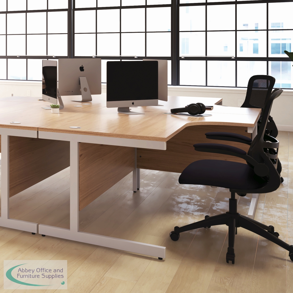 Suitable for use in a variety of office environments, this First Rectangular Cantilever Desk features a strong cantilever frame for support and stability. It features a 25mm thick desktop with dual 62mm cable management ports to keep workspaces tidy and free from wires. The desk includes a modesty panel as standard and is suitable for use with First Under Desk Pedestals.