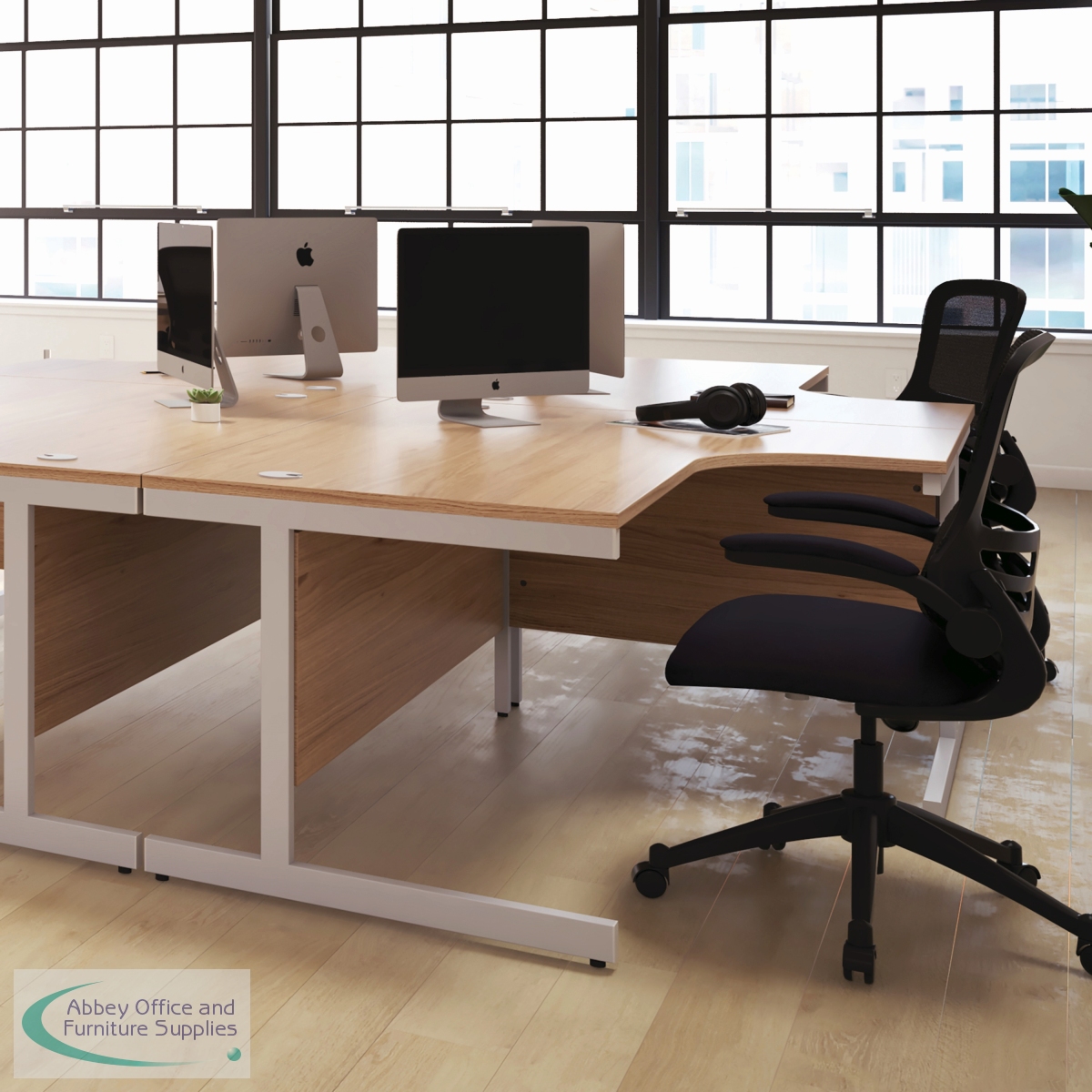 Suitable for use in a variety of office environments, this First Rectangular Cantilever Desk features a strong cantilever frame for support and stability. It features a 25mm thick desktop with dual 62mm cable management ports to keep workspaces tidy and free from wires. The desk includes a modesty panel as standard and is suitable for use with First Under Desk Pedestals.
