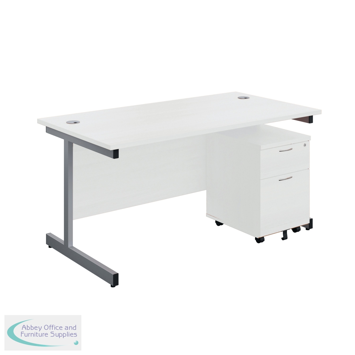 KF803577 - First Single Desk with 2 Drawer Pedestal 1600x800mm White/Silver KF803577