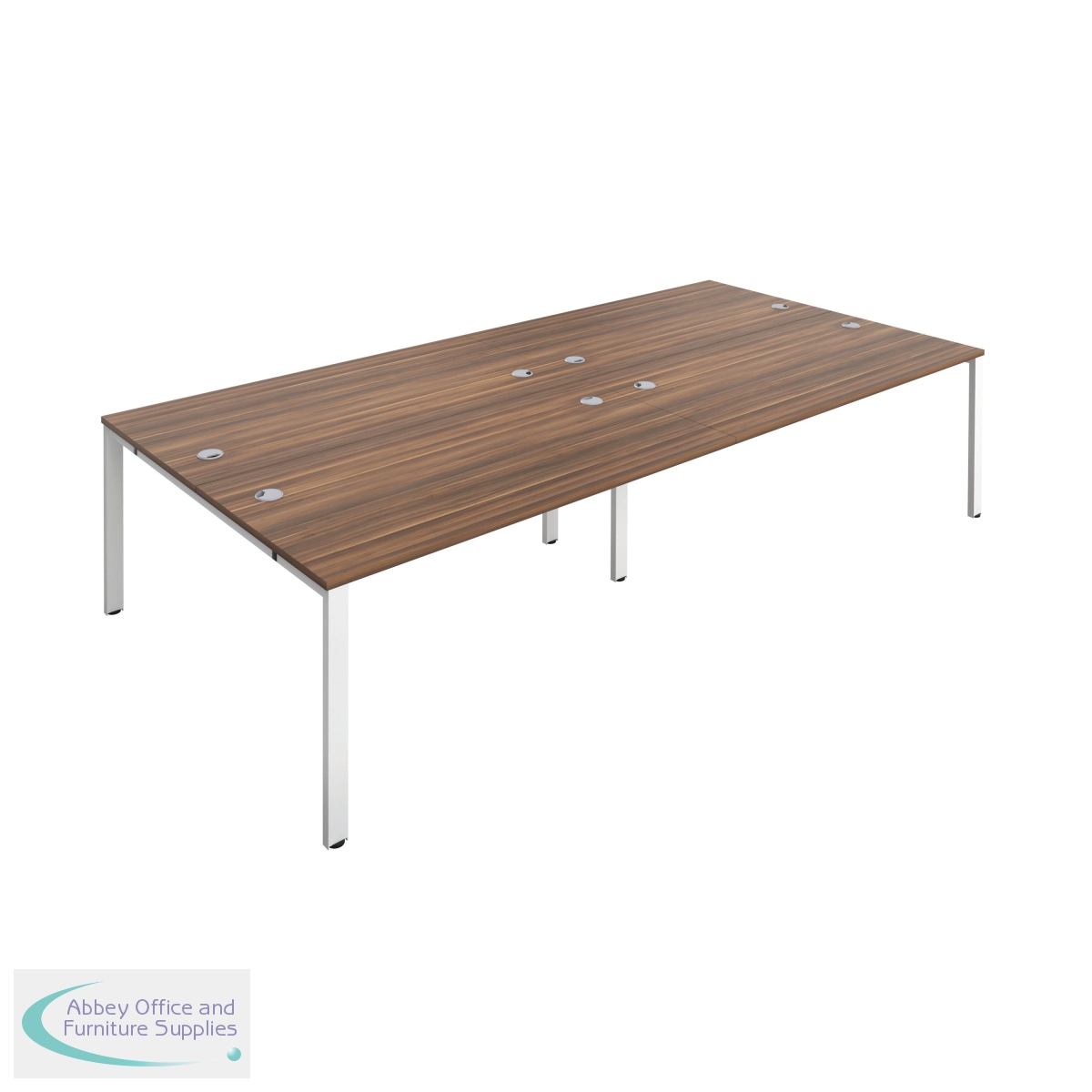 KF808770 - Jemini 4 Person Bench Desk 2400x1600x730mm Dark Walnut/White KF808770