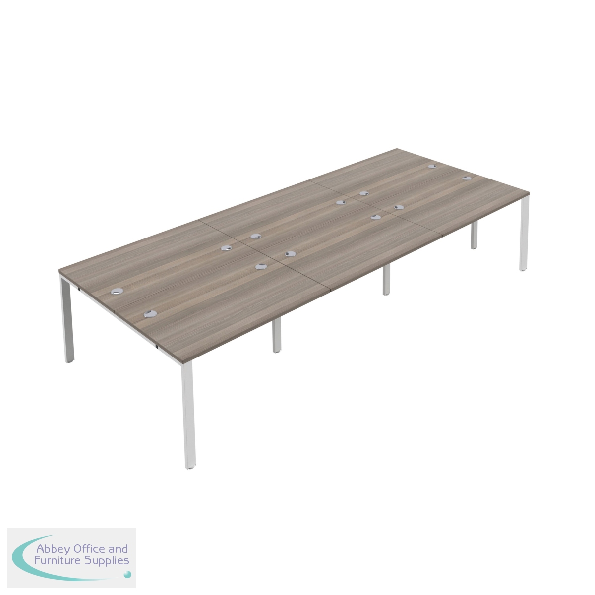 KF808794 - Jemini 6 Person Bench Desk 3600x1600x730mm Grey Oak/White KF808794
