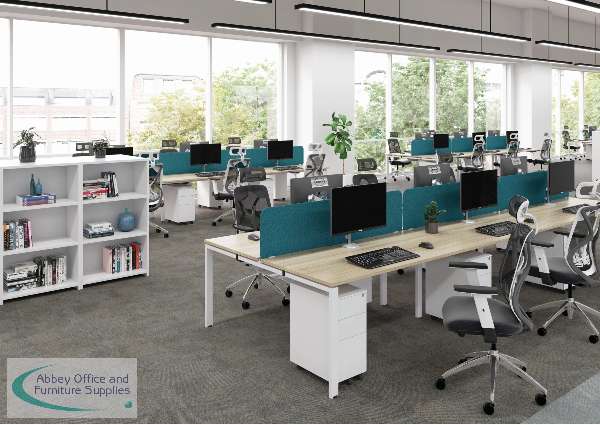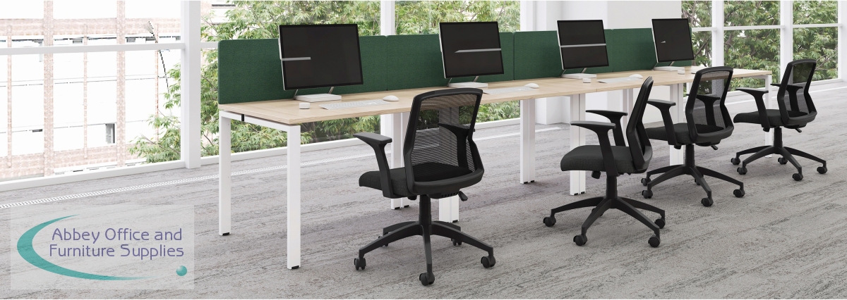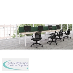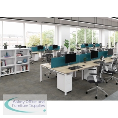 The Jemini Bench System Desking is ideal for offices where space is at a premium. Each bench desk has a tubular steel leg construction with an MFC finish floating top effect. The scalloped desktops allow for easy access to cables. Each bench desk measures 1600x800x730mm.