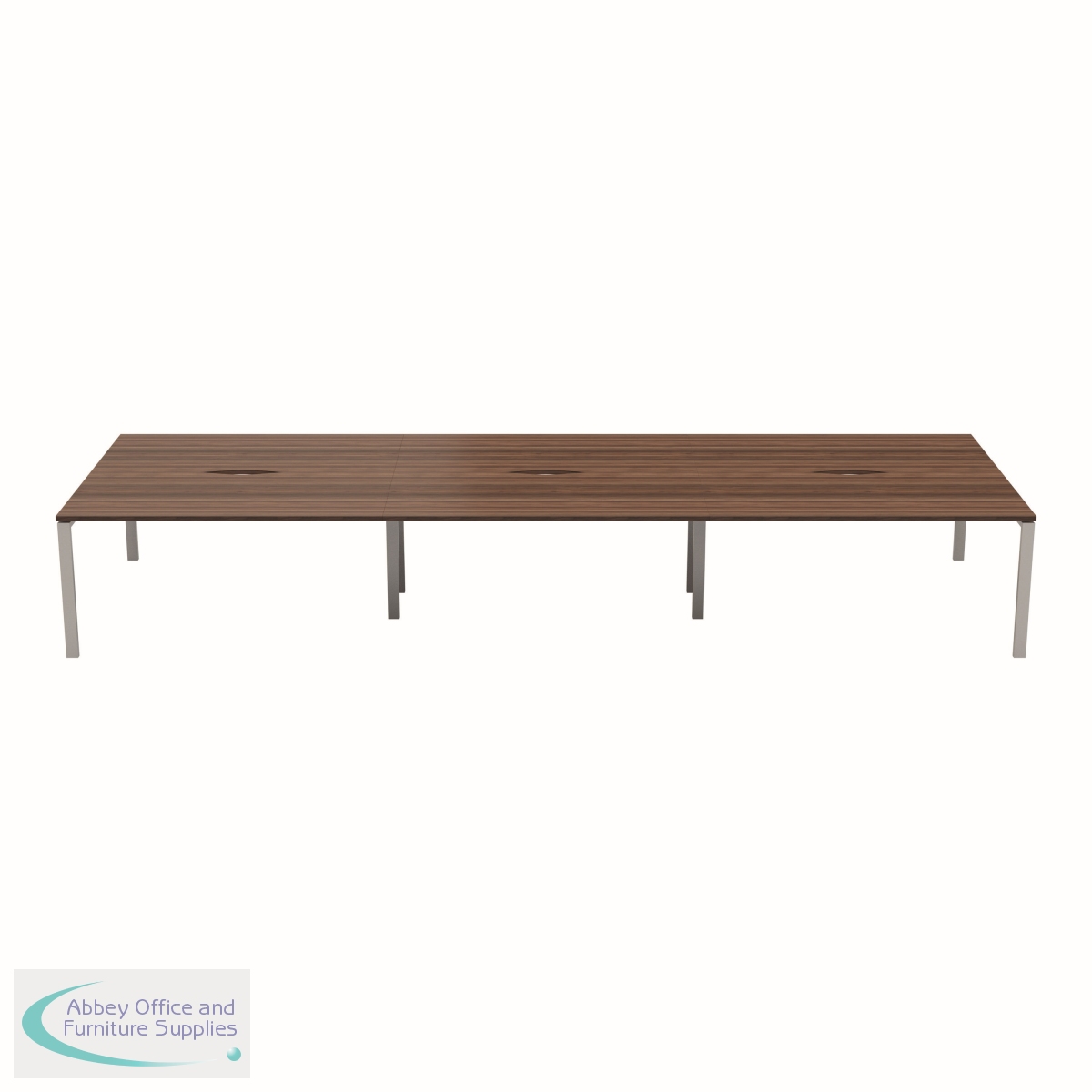 KF809555 - Jemini 6 Person Bench Desk 4800x1600x730mm Dark Walnut/White KF809555