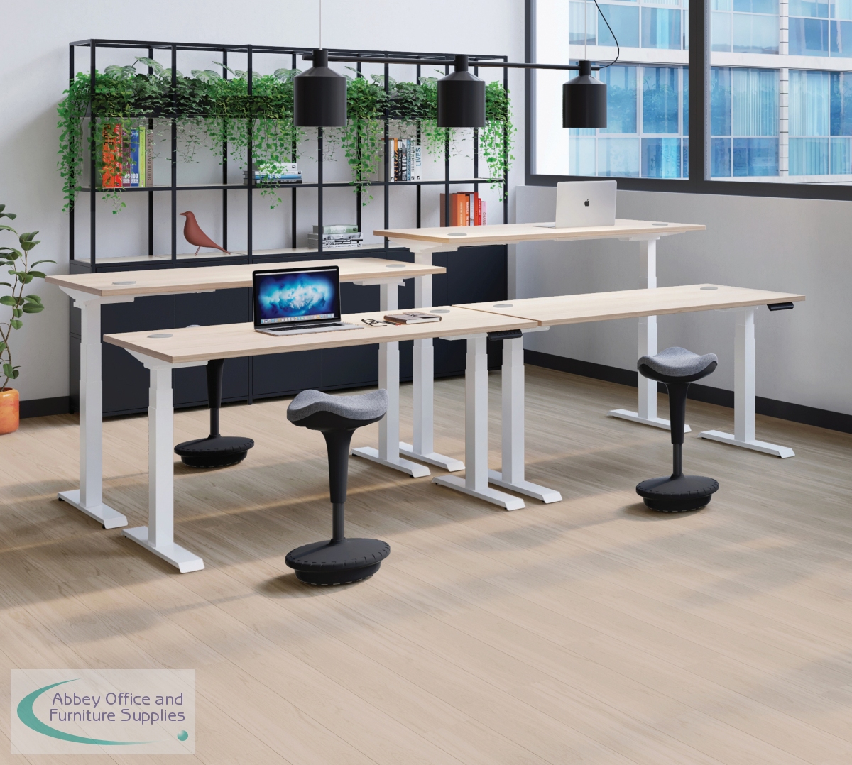 This Jemini Sit/Stand Desk features 3 stage height adjustability with a digital display and 4 pre-set buttons for an easy transition between sitting and standing. The 25mm thick desktop is mounted on sturdy cantilever legs and features dual cable management ports. This desk measures 1200x800x630-1290mm and comes with silver legs.