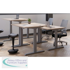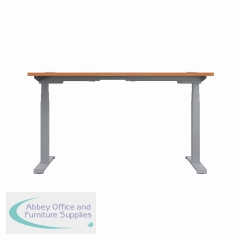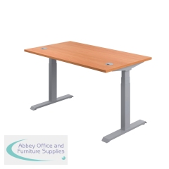 KF809685 - Jemini Sit/Stand Desk with Cable Ports 1200x800x630-1290mm Beech/Silver KF809685