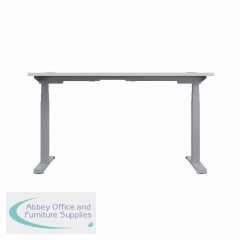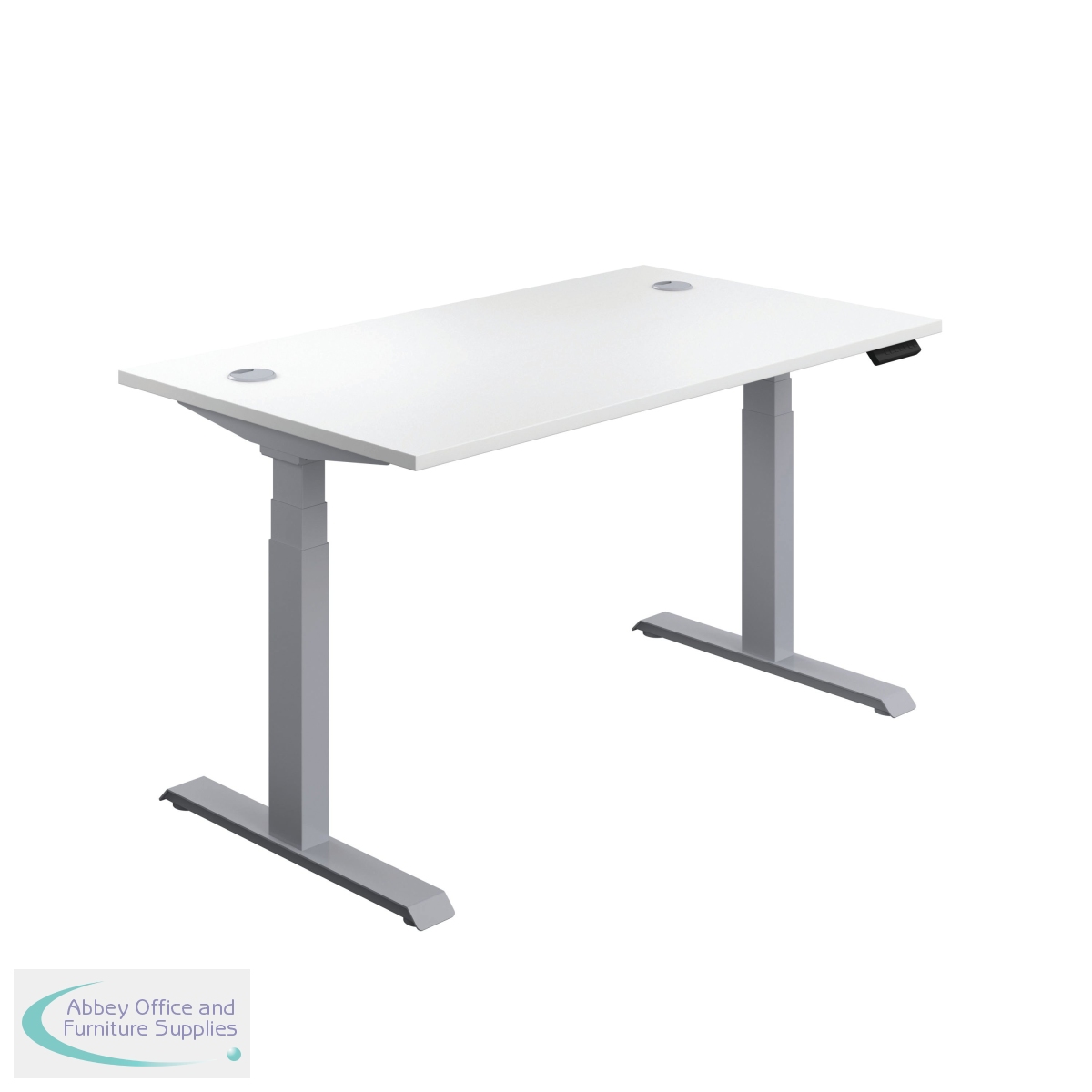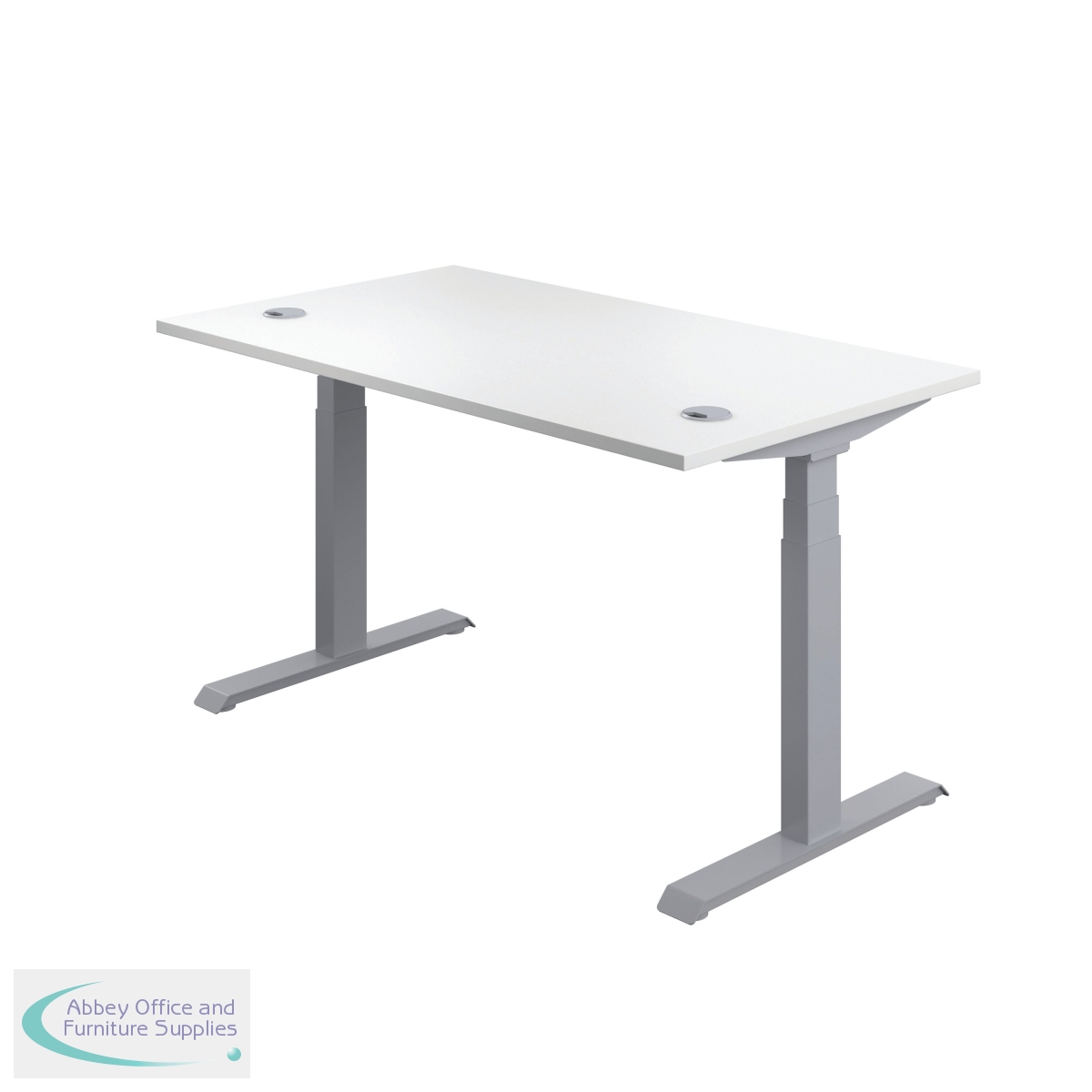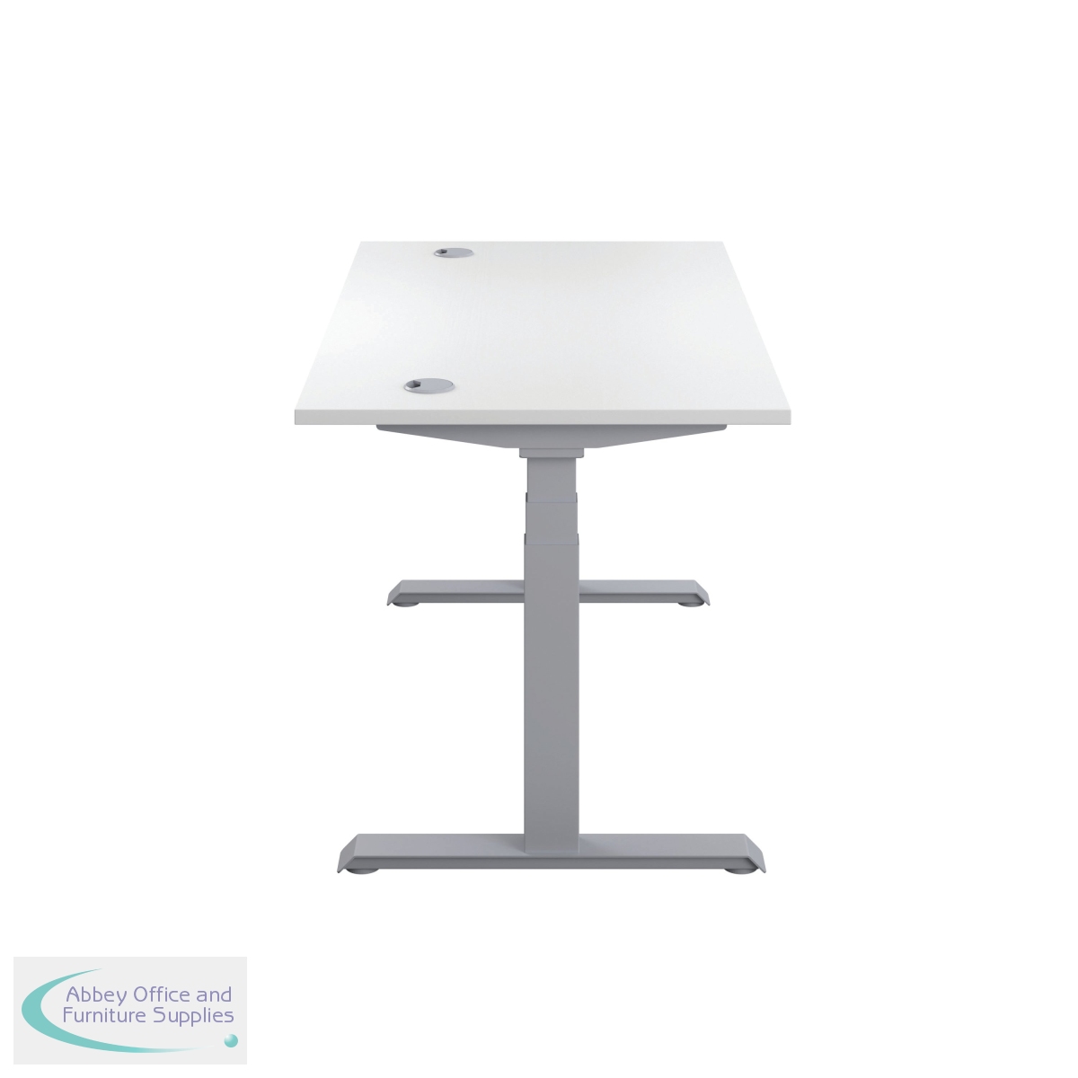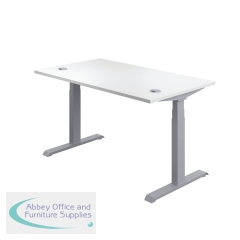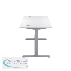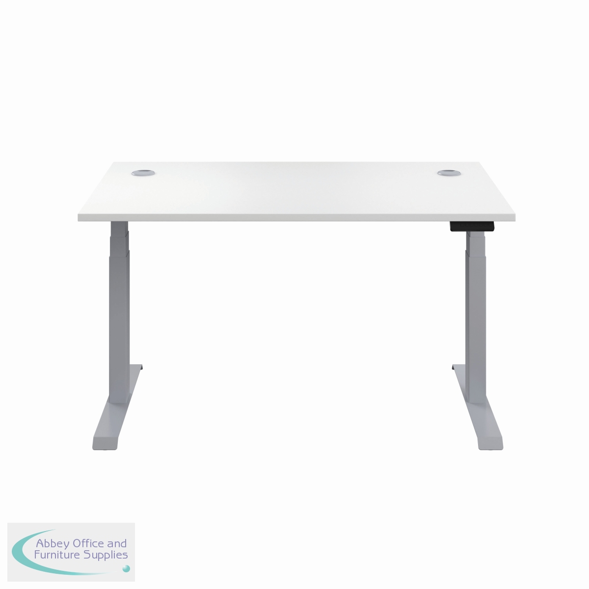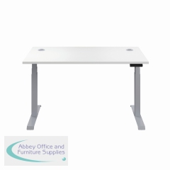 KF809739 - Jemini Sit/Stand Desk with Cable Ports 1200x800x630-1290mm White/Silver KF809739