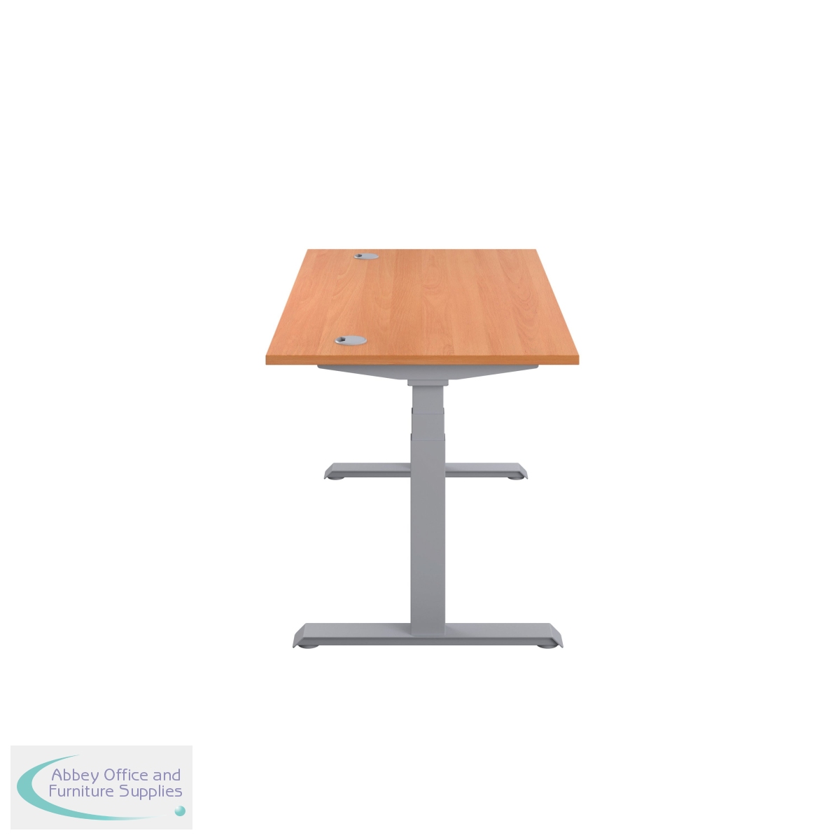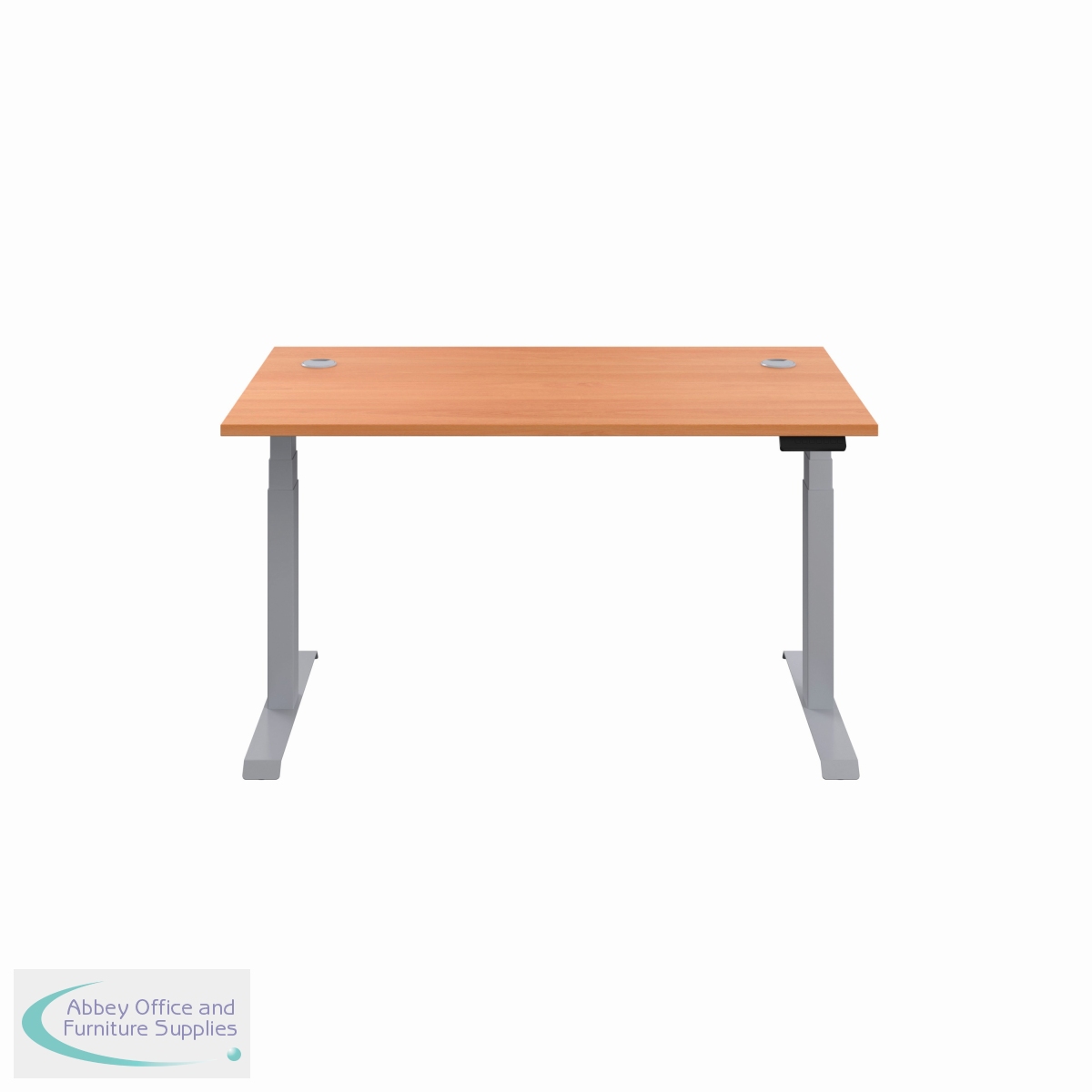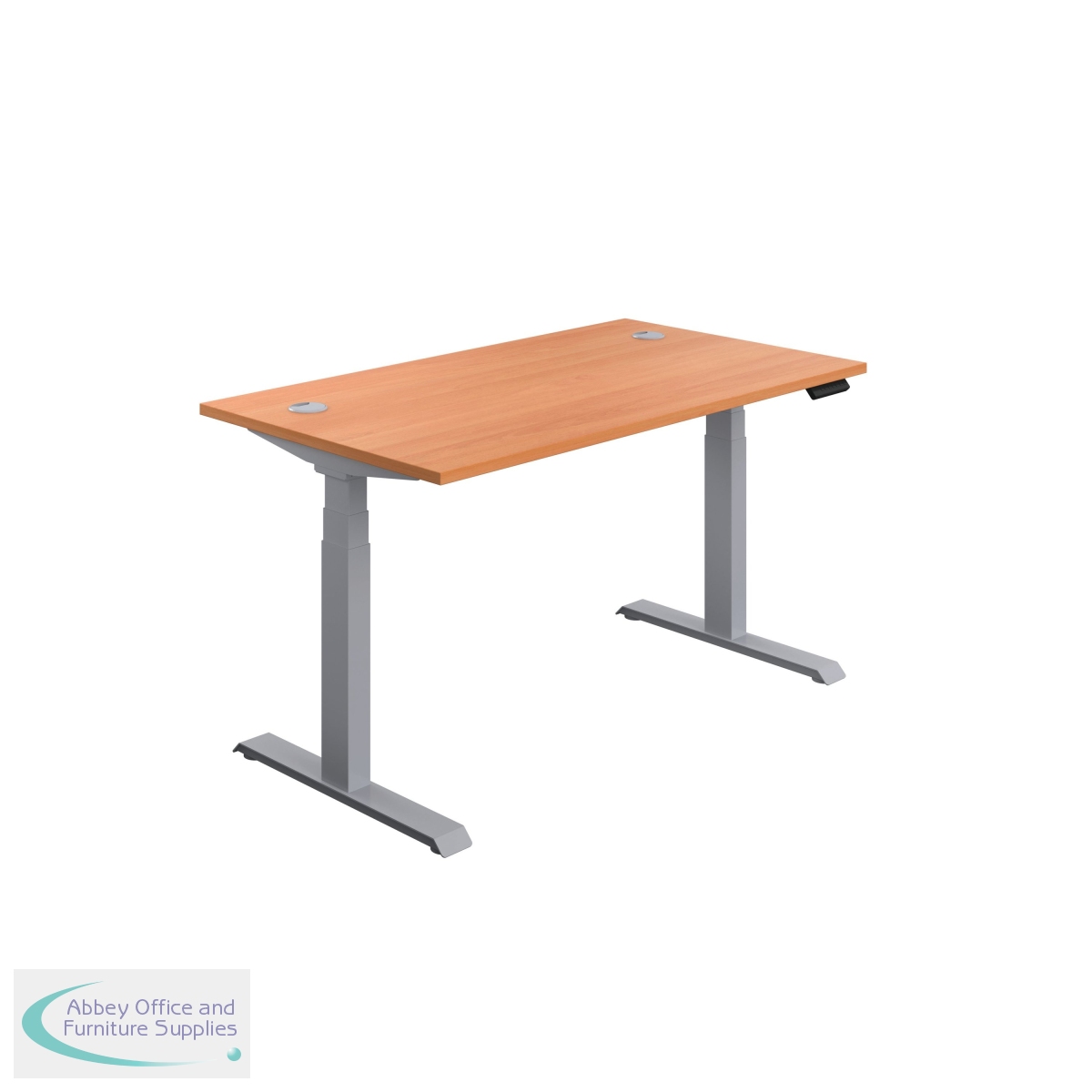 KF809807 - Jemini Sit/Stand Desk with Cable Ports 1400x800x630-1290mm Beech/Silver KF809807