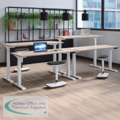 This Jemini Sit/Stand Desk features 3 stage height adjustability with a digital display and 4 pre-set buttons for an easy transition between sitting and standing. The 25mm thick desktop is mounted on sturdy cantilever legs and features dual cable management ports. This desk measures 1400x800x630-1290mm and comes with silver legs.