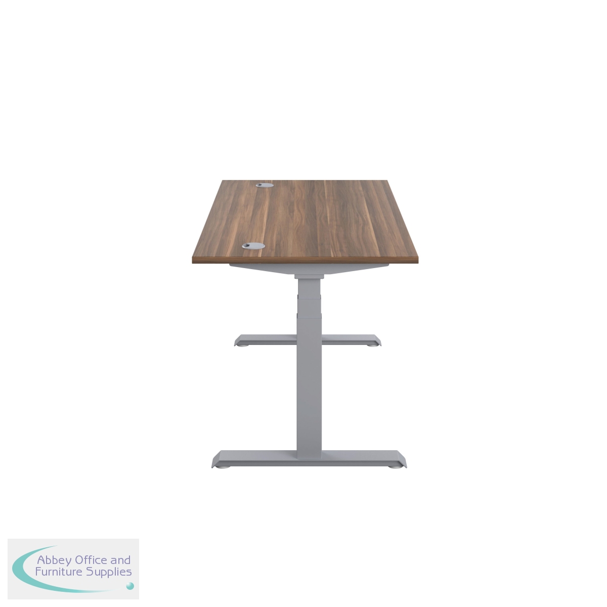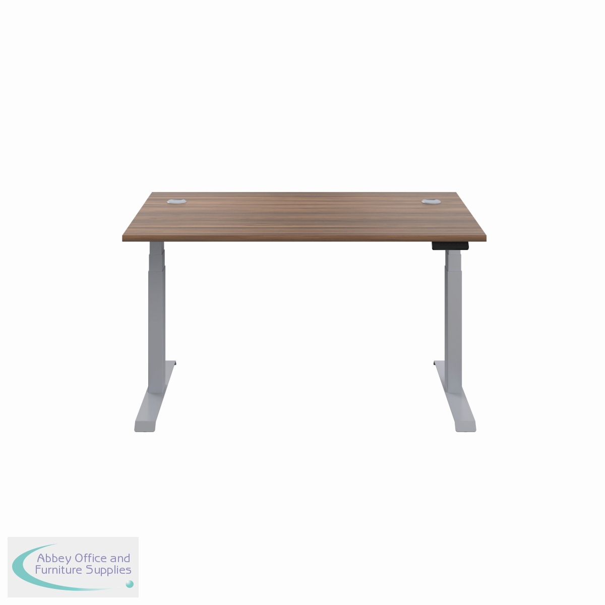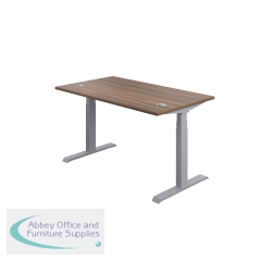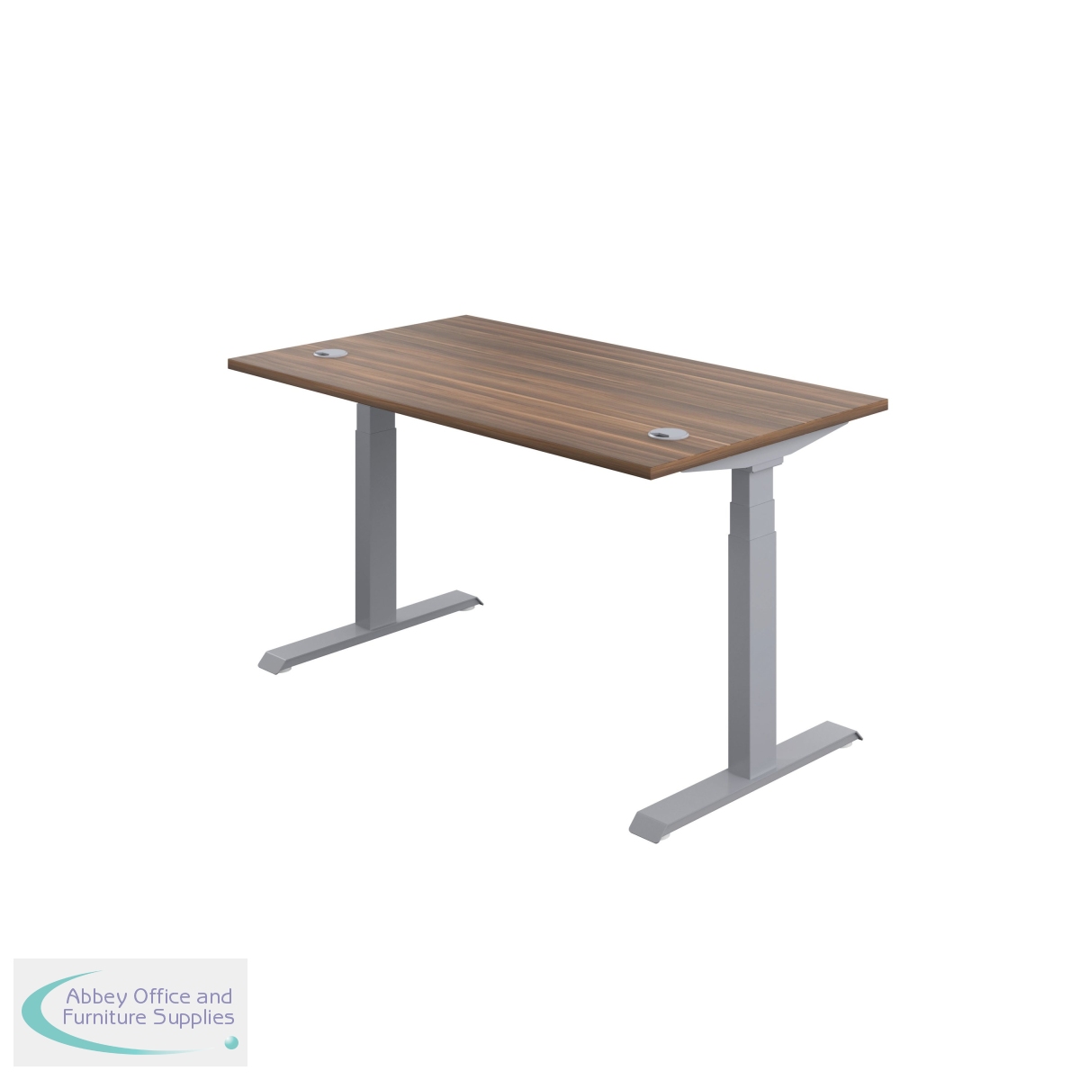 KF809814 - Jemini Sit/Stand Desk with Cable Ports 1400x800x630-1290mm Dark Walnut/Silver KF809814