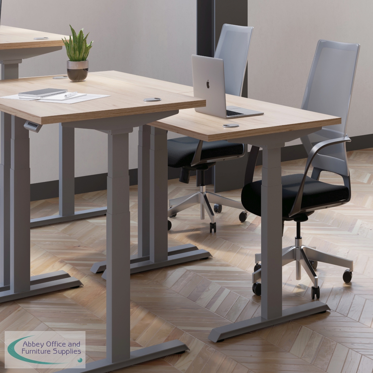 This Jemini Sit/Stand Desk features 3 stage height adjustability with a digital display and 4 pre-set buttons for an easy transition between sitting and standing. The 25mm thick desktop is mounted on sturdy cantilever legs and features dual cable management ports. This desk measures 1400x800x630-1290mm and comes with silver legs.