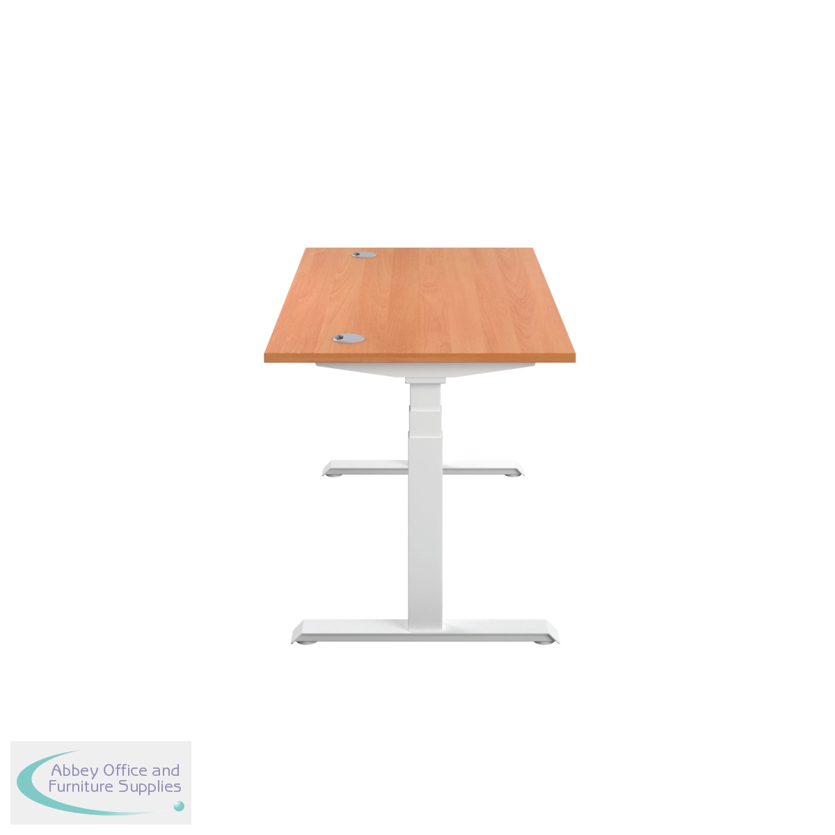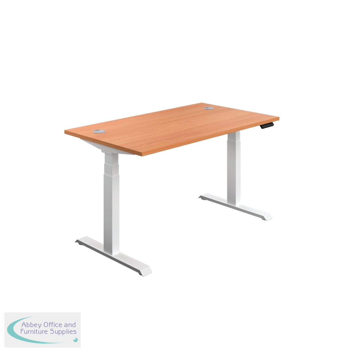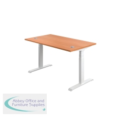 KF809869 - Jemini Sit/Stand Desk with Cable Ports 1400x800x630-1290mm Beech/White KF809869