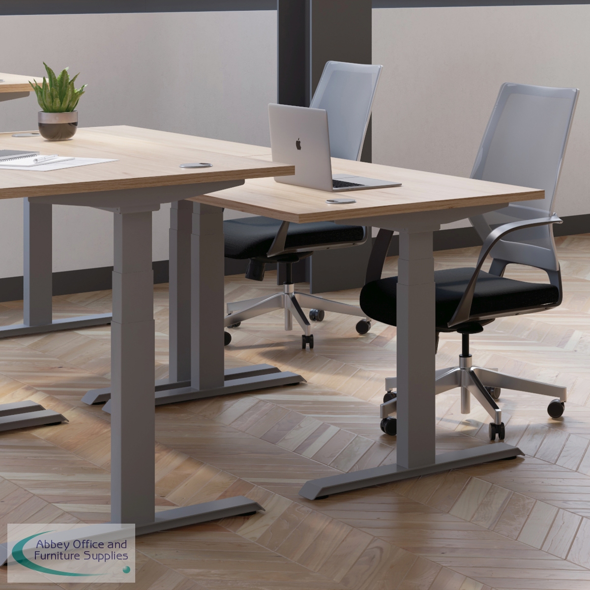 This Jemini Sit/Stand Desk features 3 stage height adjustability with a digital display and 4 pre-set buttons for an easy transition between sitting and standing. The 25mm thick desktop is mounted on sturdy cantilever legs and features dual cable management ports. This desk measures 1400x800x630-1290mm and comes with white legs.