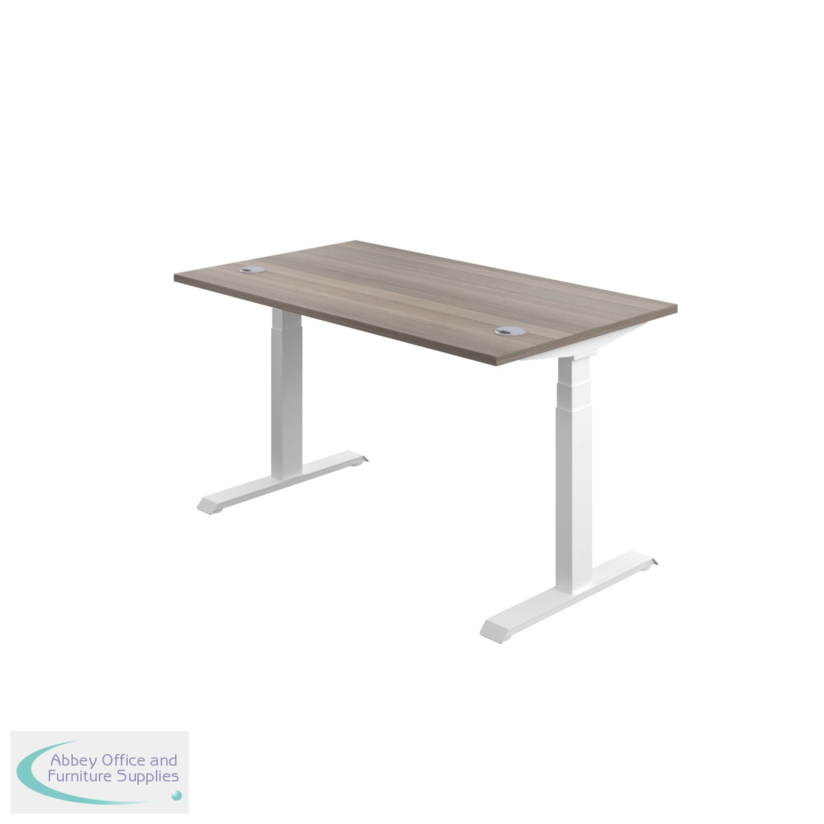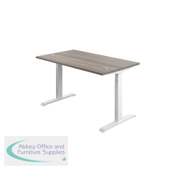 KF809883 - Jemini Sit/Stand Desk with Cable Ports 1400x800x630-1290mm Grey Oak/White KF809883