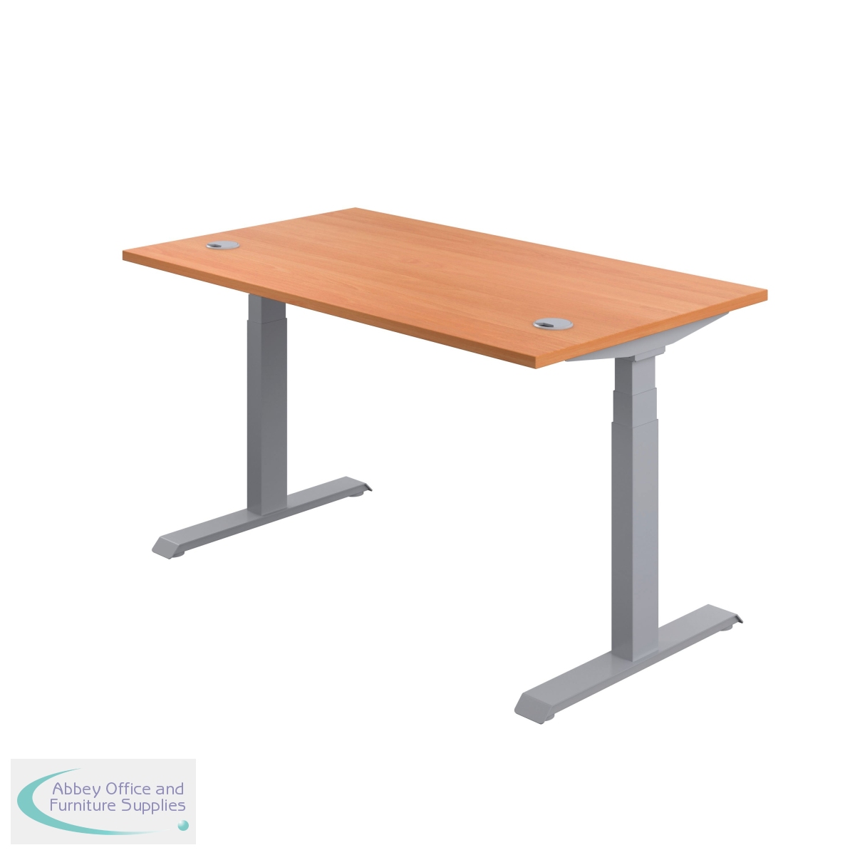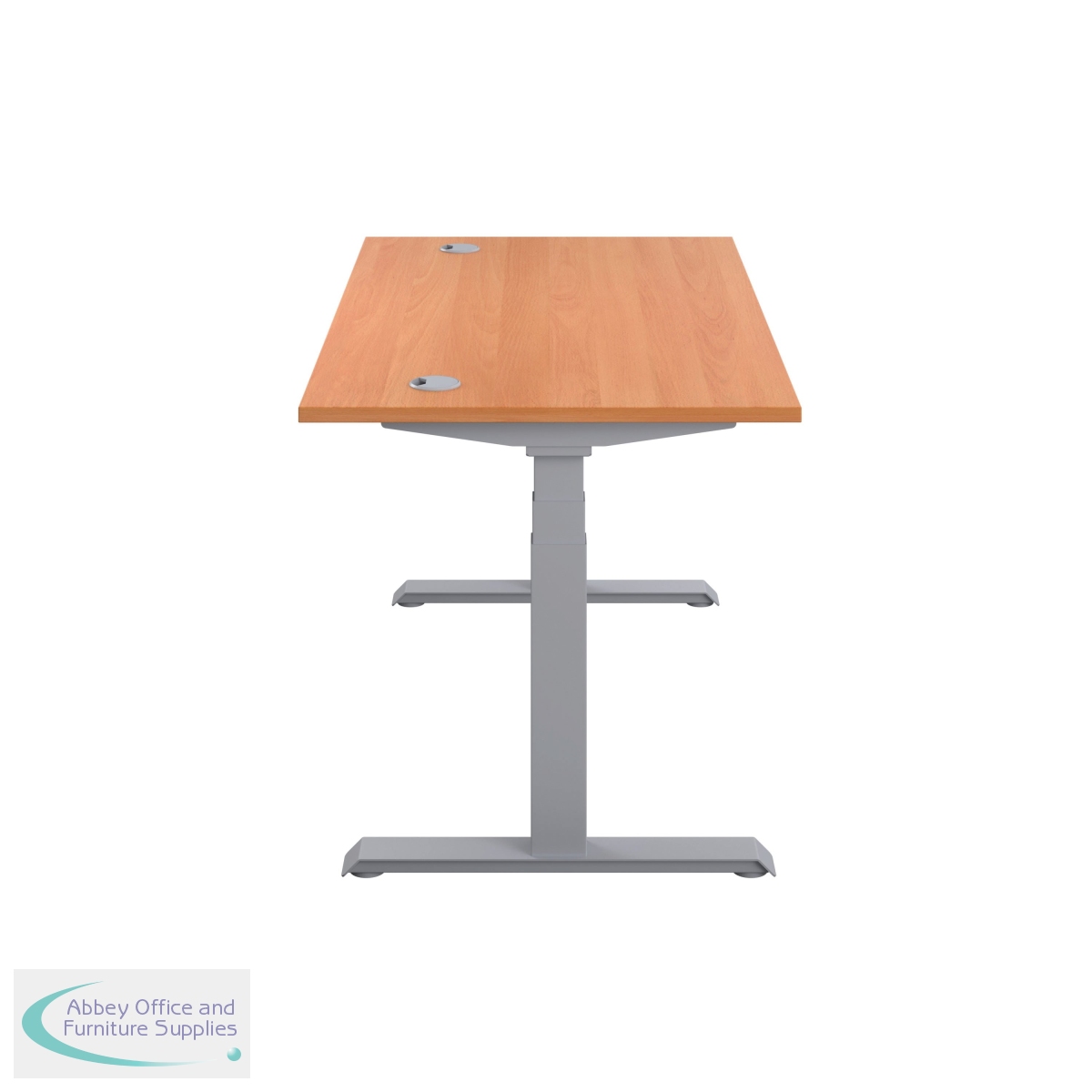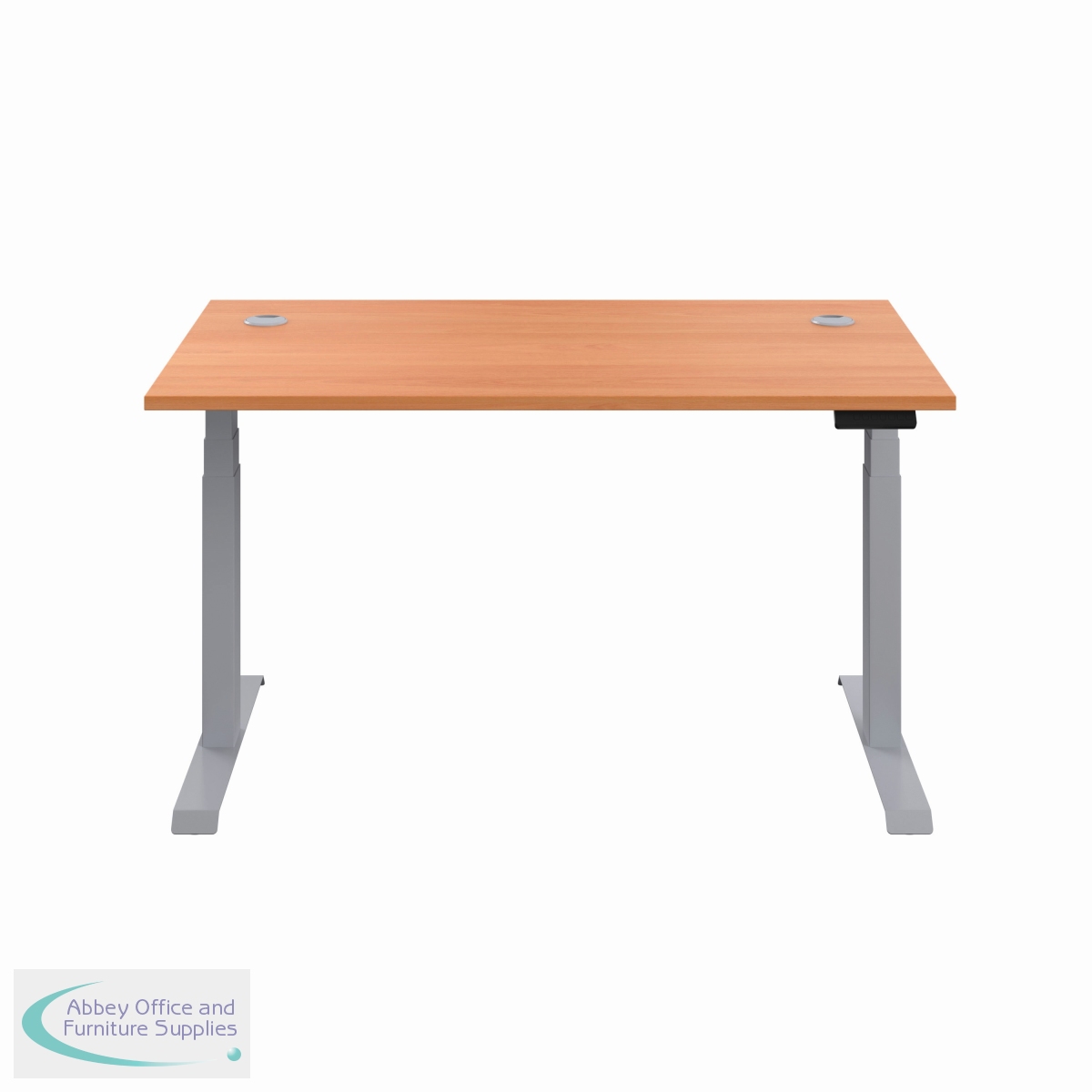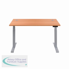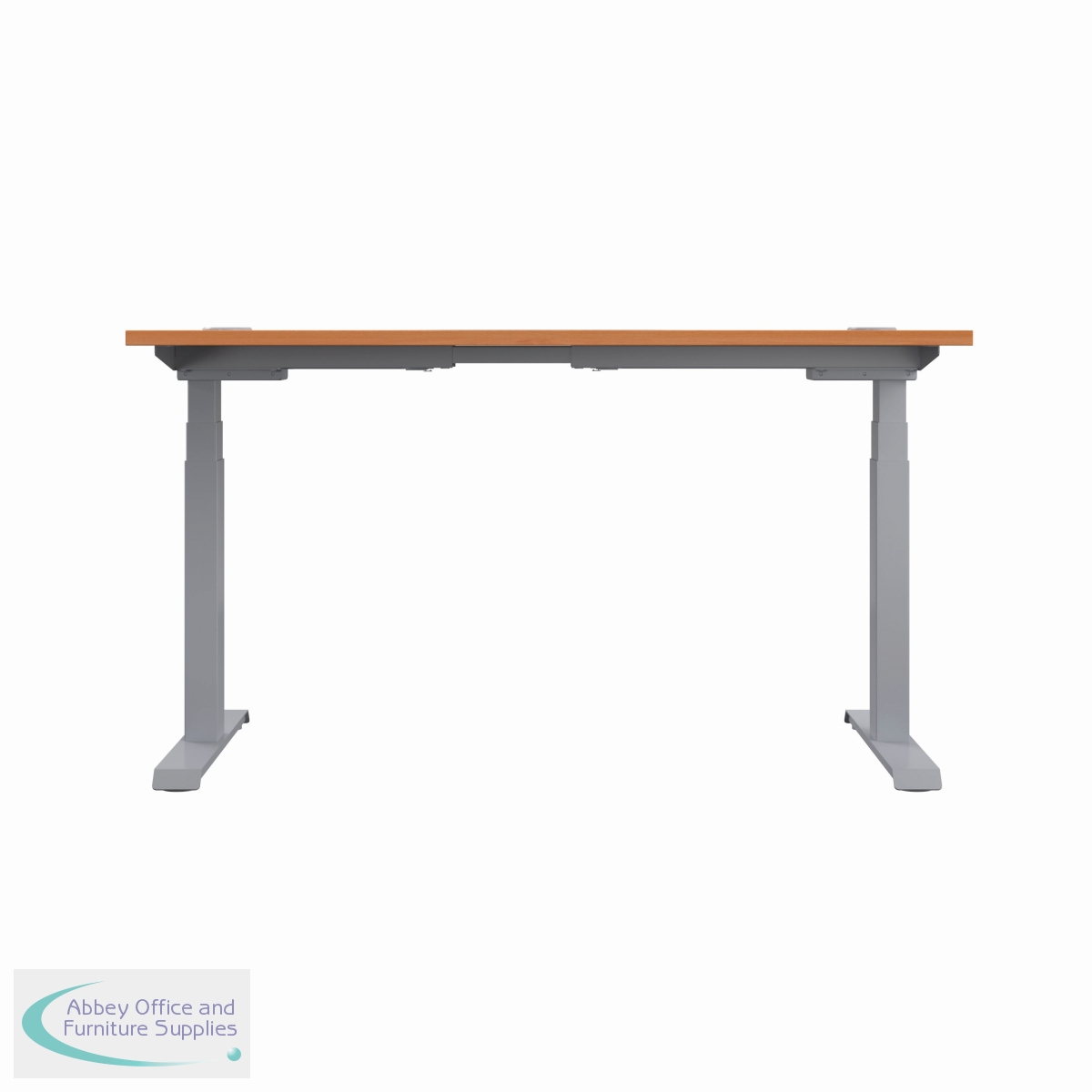 KF809920 - Jemini Sit/Stand Desk with Cable Ports 1600x800x630-1290mm Beech/Silver KF809920