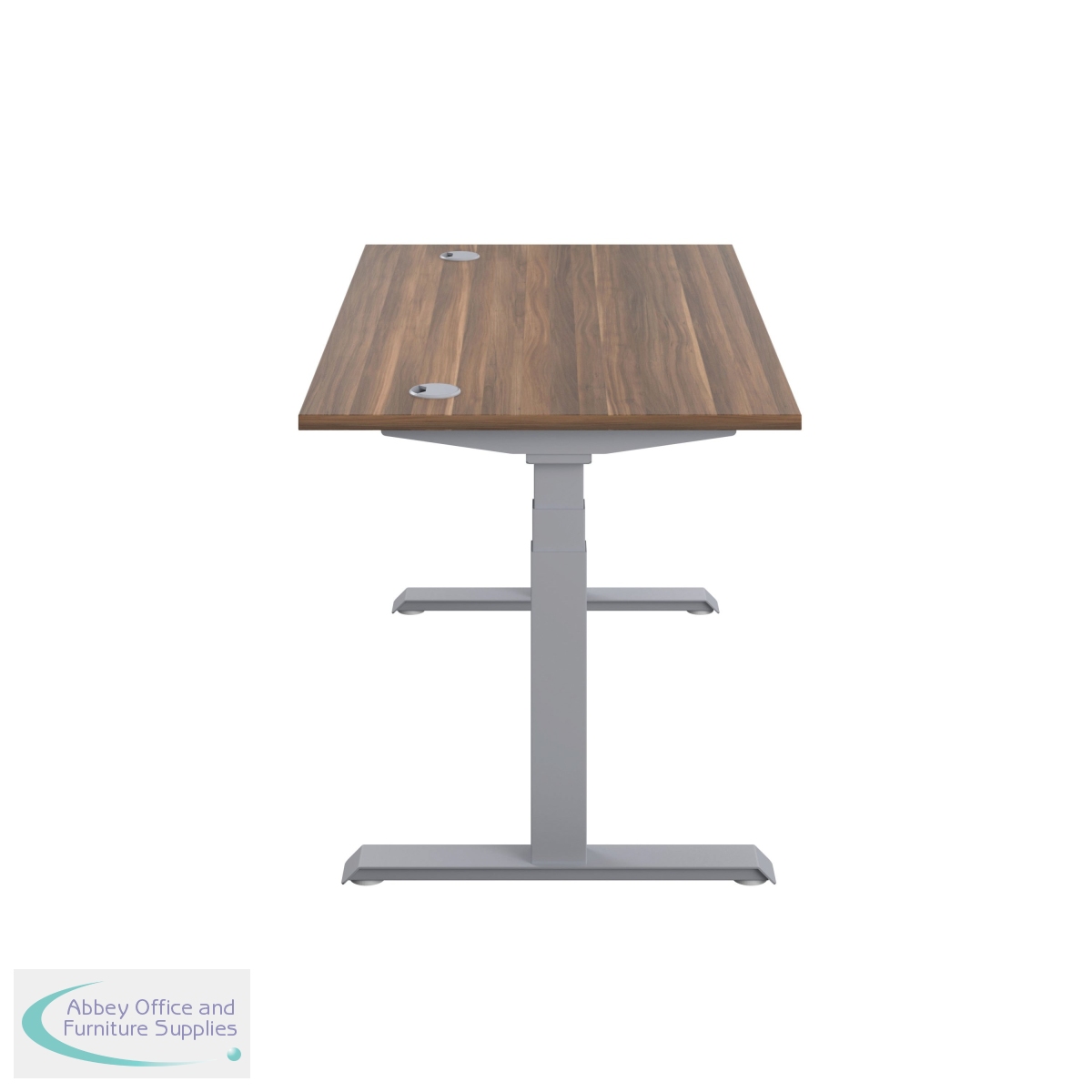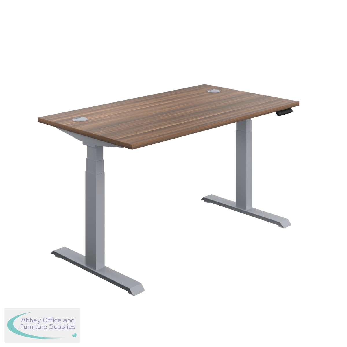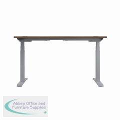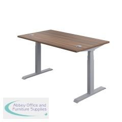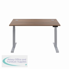 KF809937 - Jemini Sit/Stand Desk with Cable Ports 1600x800x630-1290mm Dark Walnut/Silver KF809937