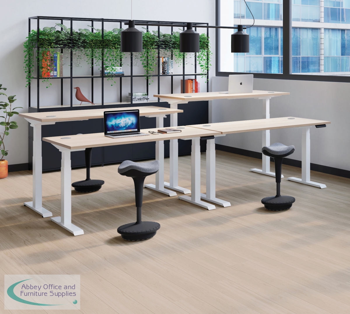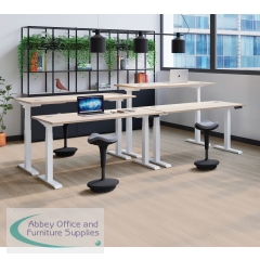 This Jemini Sit/Stand Desk features 3 stage height adjustability with a digital display and 4 pre-set buttons for an easy transition between sitting and standing. The 25mm thick desktop is mounted on sturdy cantilever legs and features dual cable management ports. This desk measures 1600x800x630-1290mm and comes with silver legs.