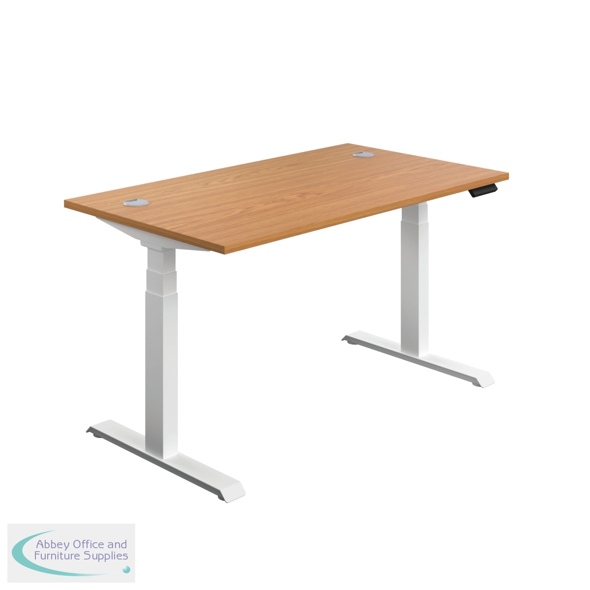 KF810025 - Jemini Sit/Stand Desk with Cable Ports 1600x800x630-1290mm Nova Oak/White KF810025