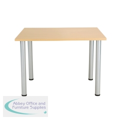 This Jemini Rectangular Meeting Table is ideal for use in meeting, training rooms and breakout areas. Combine with other tables in the range to form a configuration that suits you. The desk features four tubular metal legs with a 25mm thick MFC desktop finished in Nova Oak. This table measures 1200x800x730mm.