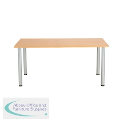 This Jemini Rectangular Meeting Table is ideal for use in meeting, training rooms and breakout areas. Combine with other tables in the range to form a configuration that suits you. The desk features four tubular metal legs with a 25mm thick MFC desktop finished in beech. This table measures 1600x800x730mm.