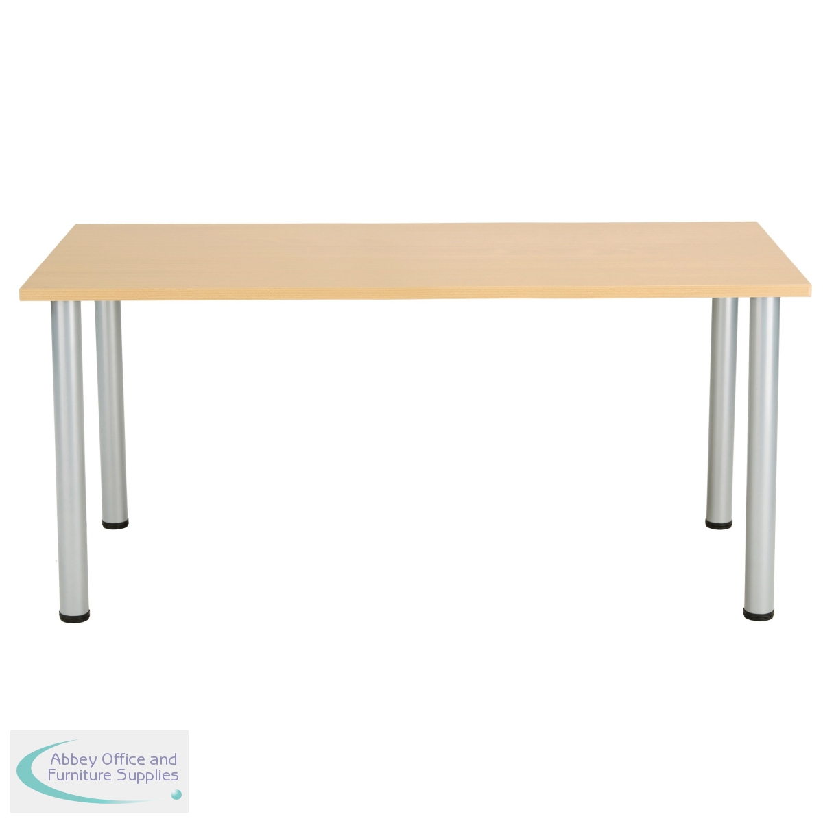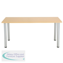 This Jemini Rectangular Meeting Table is ideal for use in meeting, training rooms and breakout areas. Combine with other tables in the range to form a configuration that suits you. The desk features four tubular metal legs with a 25mm thick MFC desktop finished in Nova Oak. Ideal for meeting rooms, breakout areas, canteens and more. This table measures 1600x800x730mm.