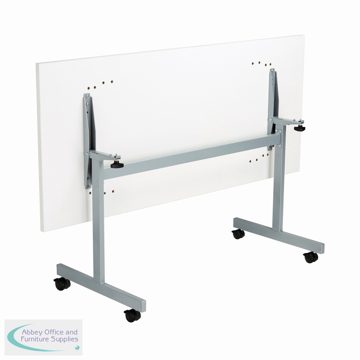 This Jemini Rectangular Tilting Table can be used individually or in groups in a configuration to suit you. The table features a 25mm desktop finished in white, with a silver frame and 4 locking castors for easy mobility. This rectangular table measures 1600x700x720mm.