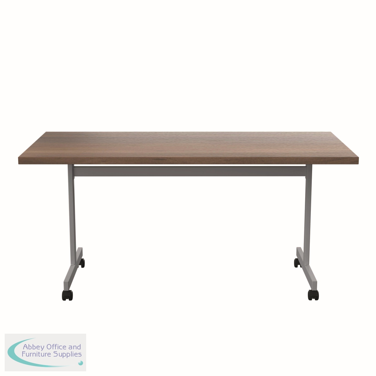 This Jemini Rectangular Tilting Table can be used individually or in groups in a configuration to suit you. The table features a 25mm desktop finished in Dark Walnut, with a silver frame and 4 locking castors for easy mobility. This rectangular table measures 1600x800x720mm.
