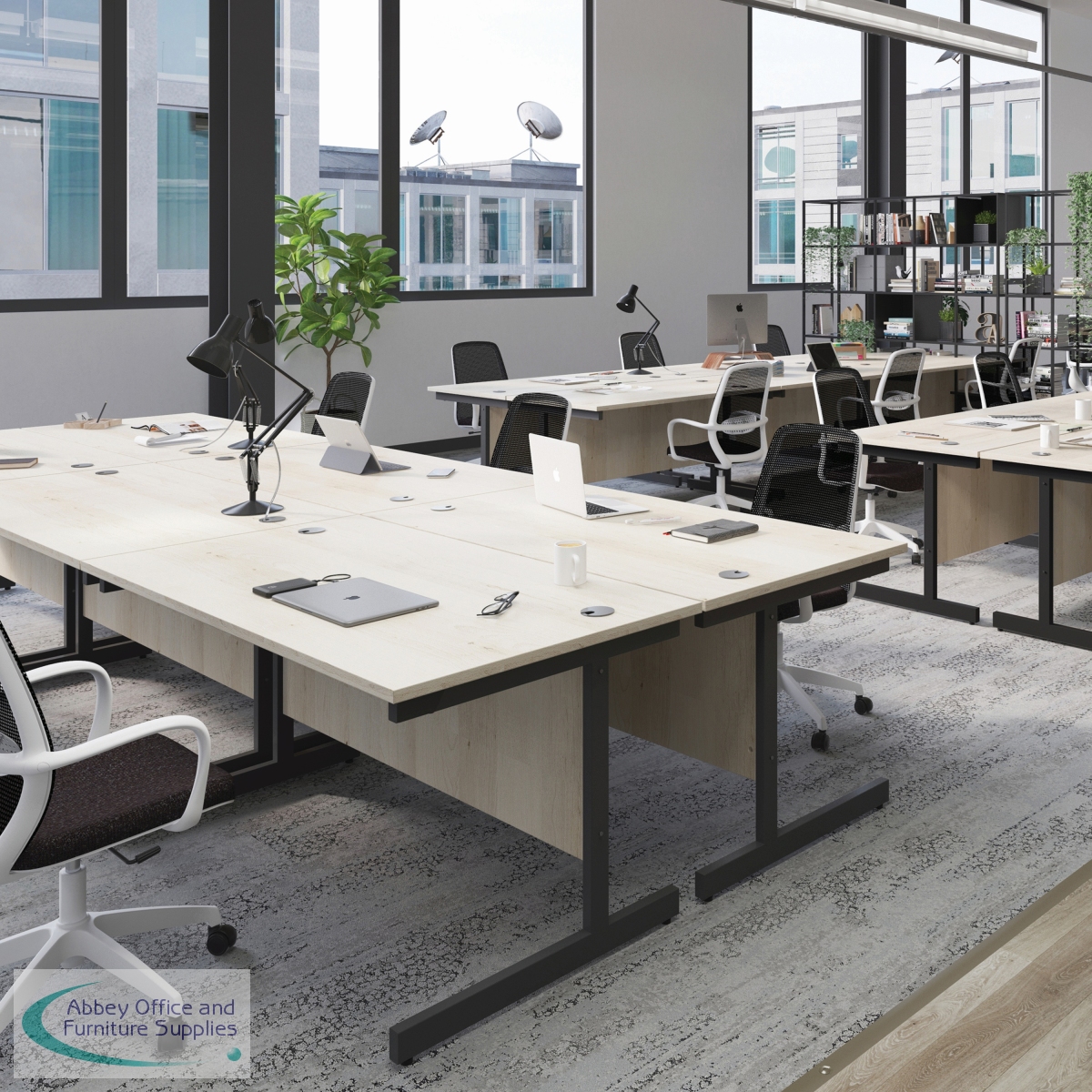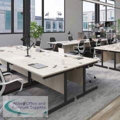 Suitable for use in a variety of office environments, this Jemini Radial Desk features a strong cantilever frame for support and stability. The radial design offers easy working access to your computer, as well as ample additional desktop space. It features a 25mm thick desktop with dual cable management ports to keep workspaces tidy and free from wires. The desk includes a modesty panel as standard and is suitable for use with Jemini Under Desk Pedestals.