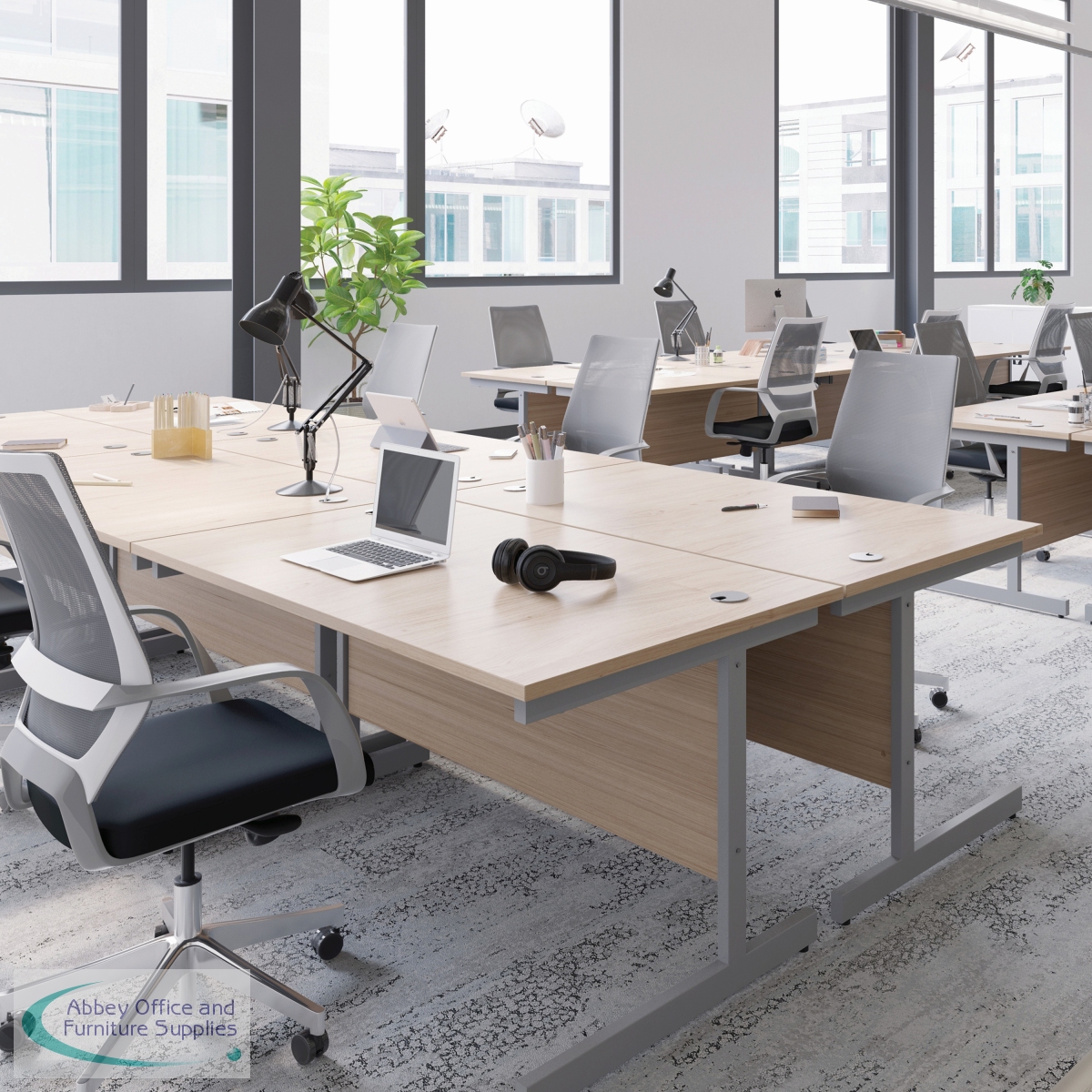 KF801721 - Jemini Radial Left Hand Cantilever Desk 1600x1200x730mm Beech/Silver KF801721