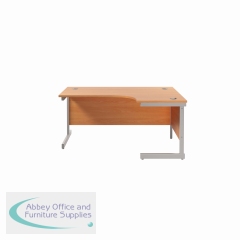 KF801784 - Jemini Radial Right Hand Cantilever Desk 1600x1200x730mm Beech/Silver KF801784