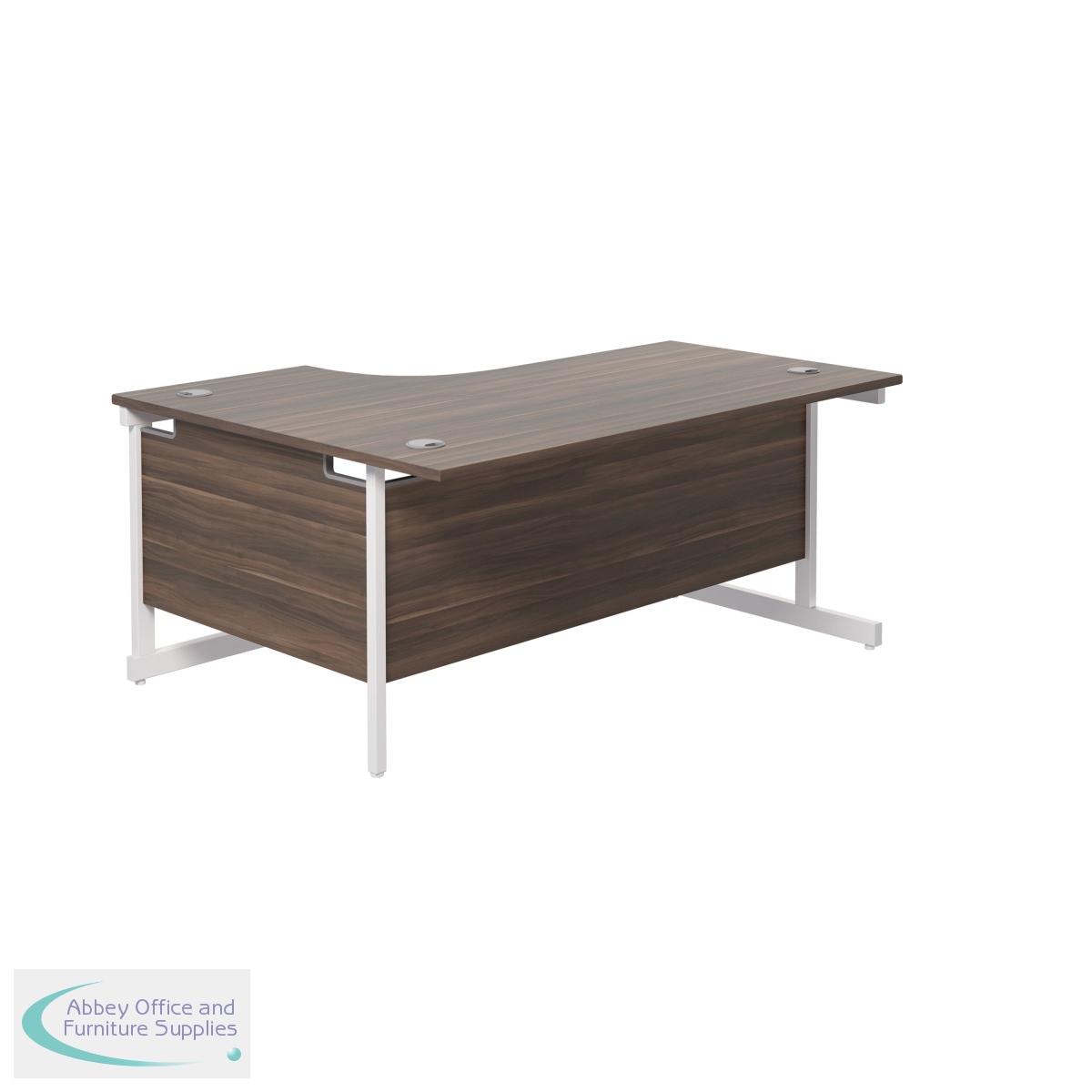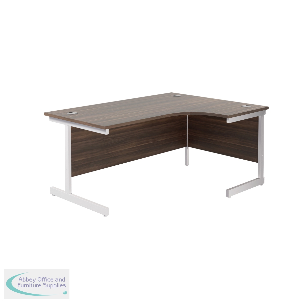 KF801958 - Jemini Radial Right Hand Cantilever Desk 1600x1200x730mm Dark Walnut/White KF801958