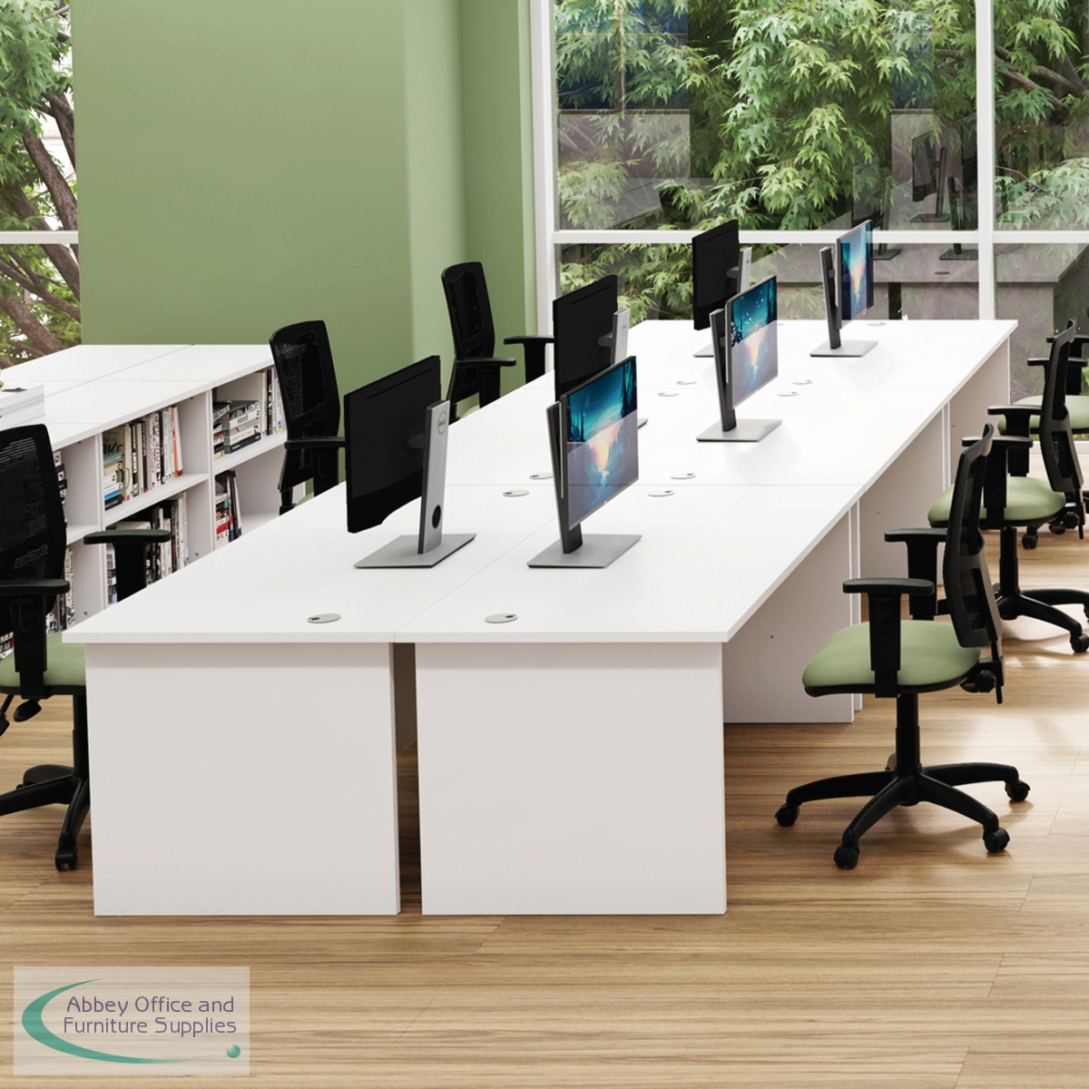 The Jemini Radial Panel End Desk features a 25mm thick desktop with dual cable management ports for neat and tidy cabling. The radial design offers easy working access to your computer, as well as ample additional desktop space. It features modesty panels as standard for privacy with sturdy panel end legs for stability. Use side-by-side with additional radial desks to create a configuration to suit your office space. Suitable for use in a variety of office environments, it can also be used in conjunction with Jemini Desk Pedestals.